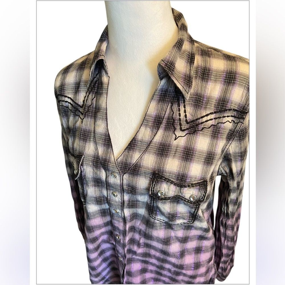 Women’s Wrangler Snap Shirt, Sz LG, Dip Dyed, Plaid, Western, Southwestern, EUC...