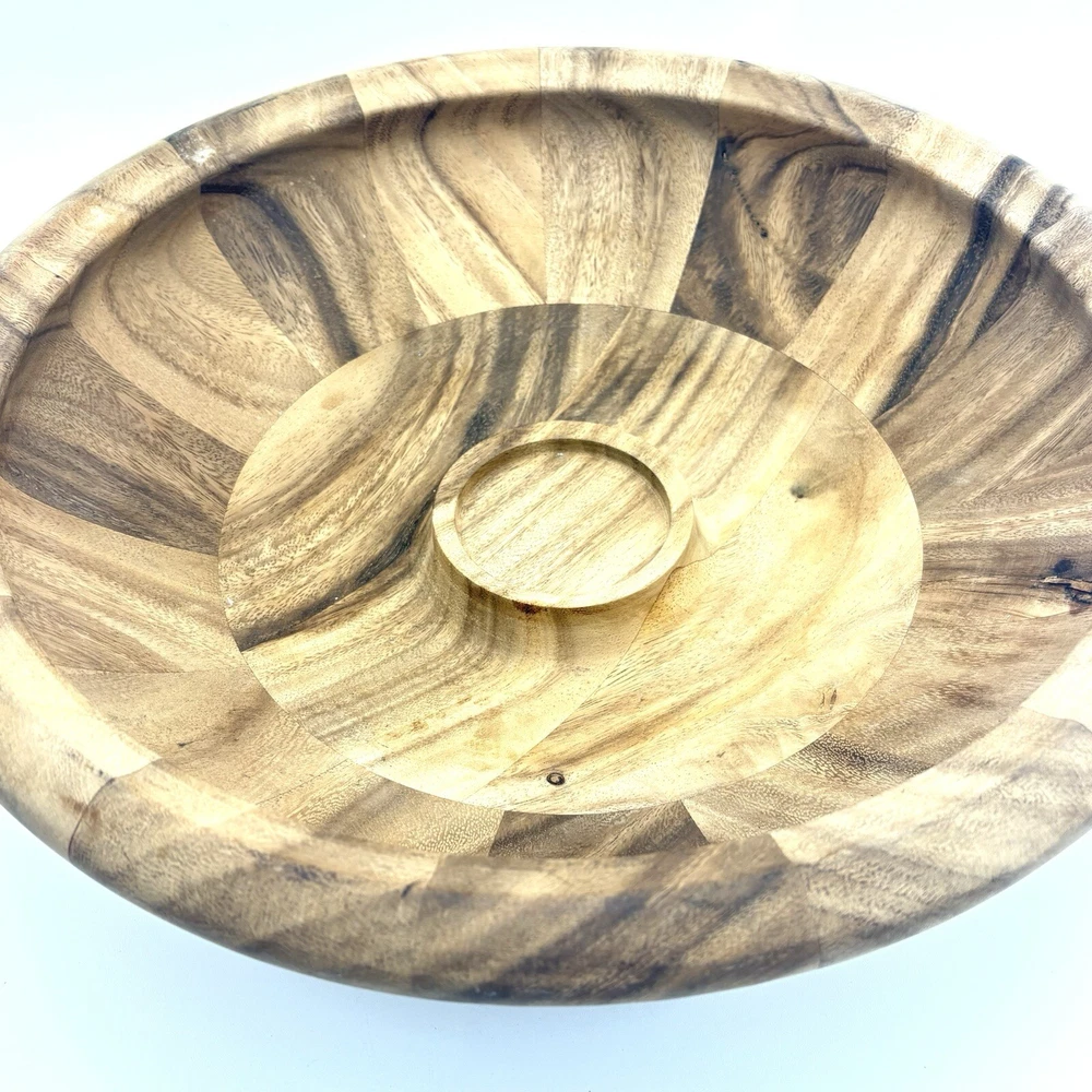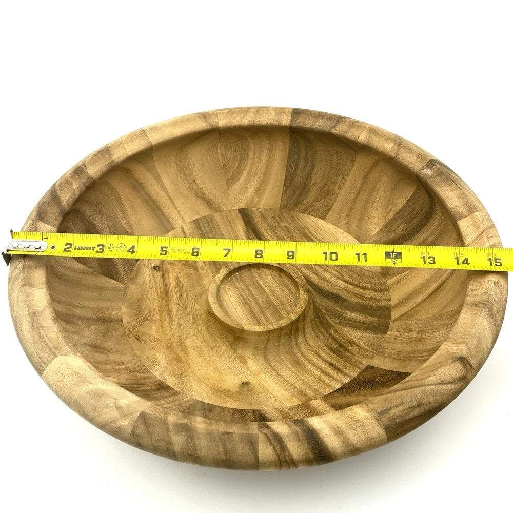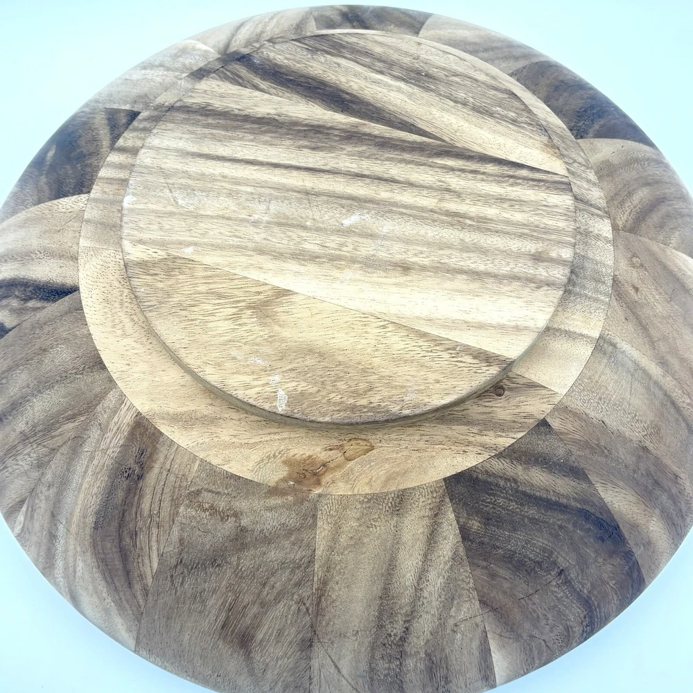 Natural wood serving set. Bowl measures about 15.5” wide and 4.5” tall. Please see photos for details.