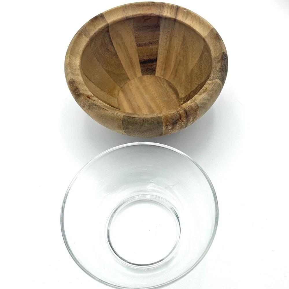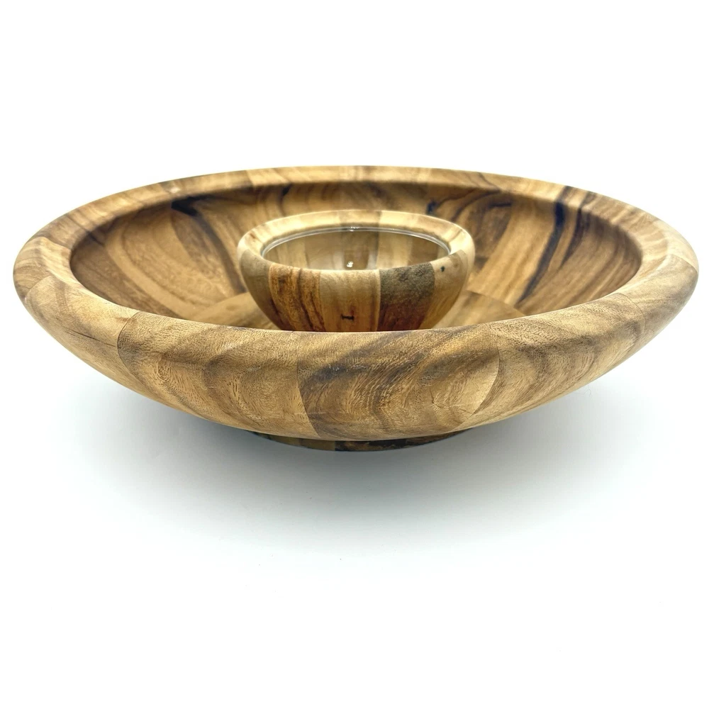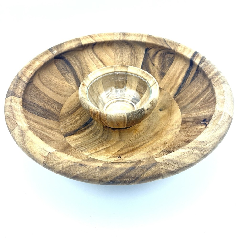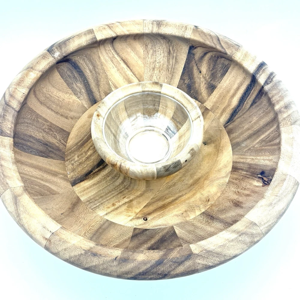 Natural wood serving set. Bowl measures about 15.5” wide and 4.5” tall. Please see photos for details.
