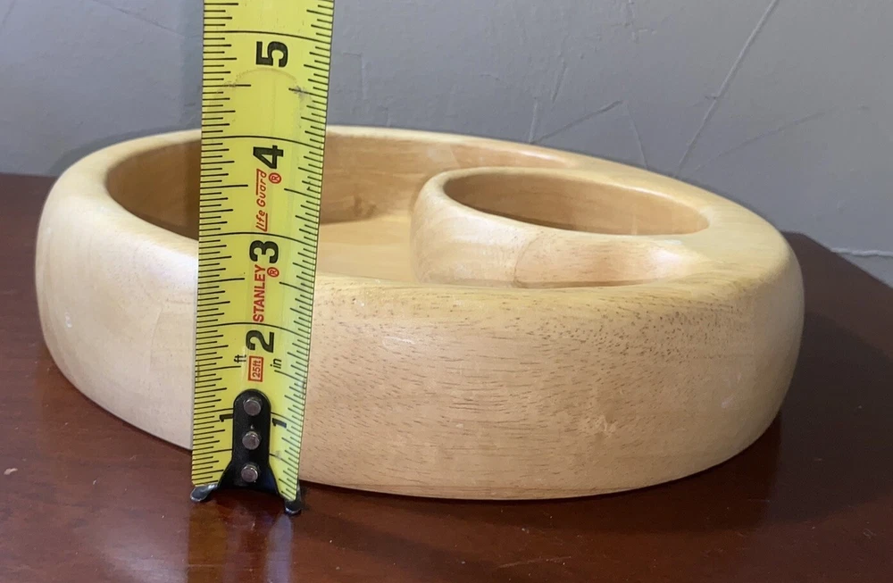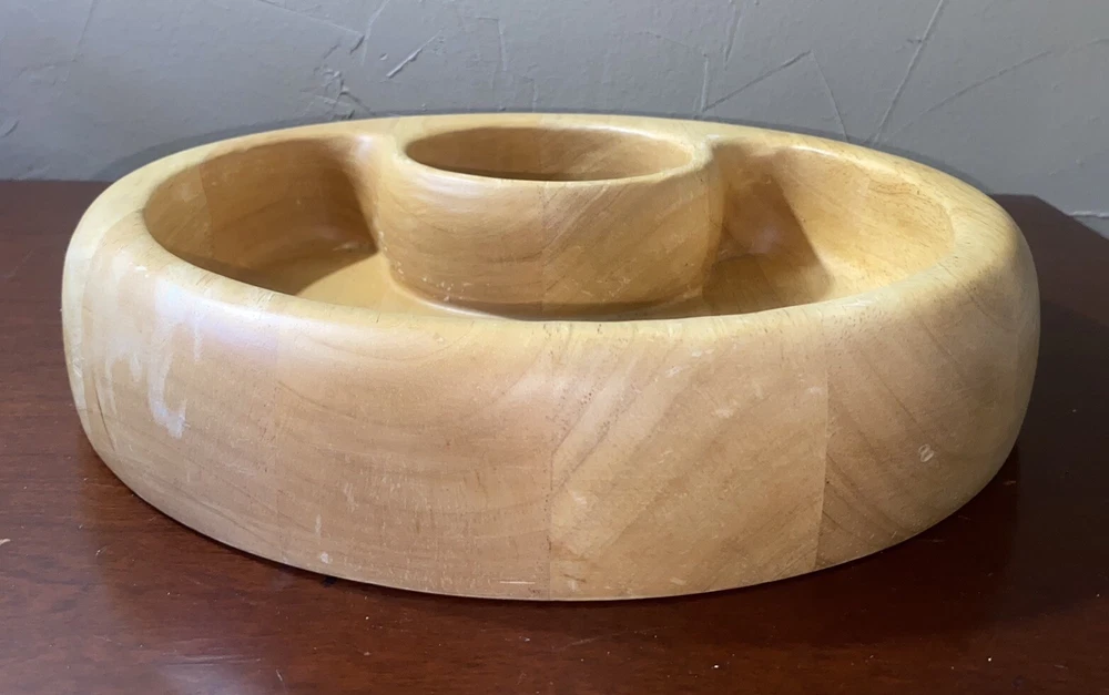 Wooden Round Dip and Chip Serving Tray Used condition - Please see photos for more details. All offers are considered! Fair offers are accepted. Reduced shipping for bundled purchases. 1 Day Handling Time / Ship Items Out Every Business Day / expect to get your items Very Fast!!! Thanks for taking the time to visit my store!!!