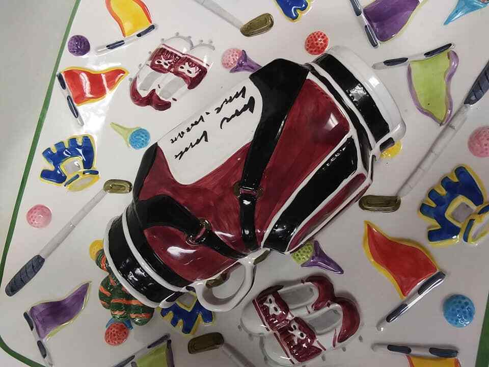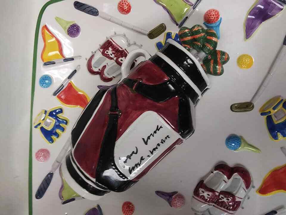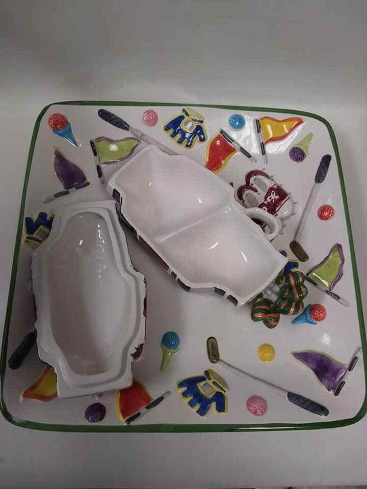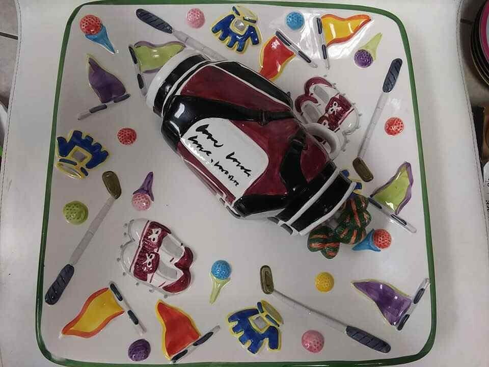 World Bazaars Inc Large Golf Theme Dip Tray, 13.5 Inches Square ~ Father's Day. Beautiful with NO chips, cracks or repairs. SHIPPING: CHOOSE EITHER USPS PRIORITY OR FEDEX... OUR PREFERRED METHOD OF SHIPPING IS FEDEX FOR FASTER DELIVERY TIME AND LESS SHIPPING DAMAGES.