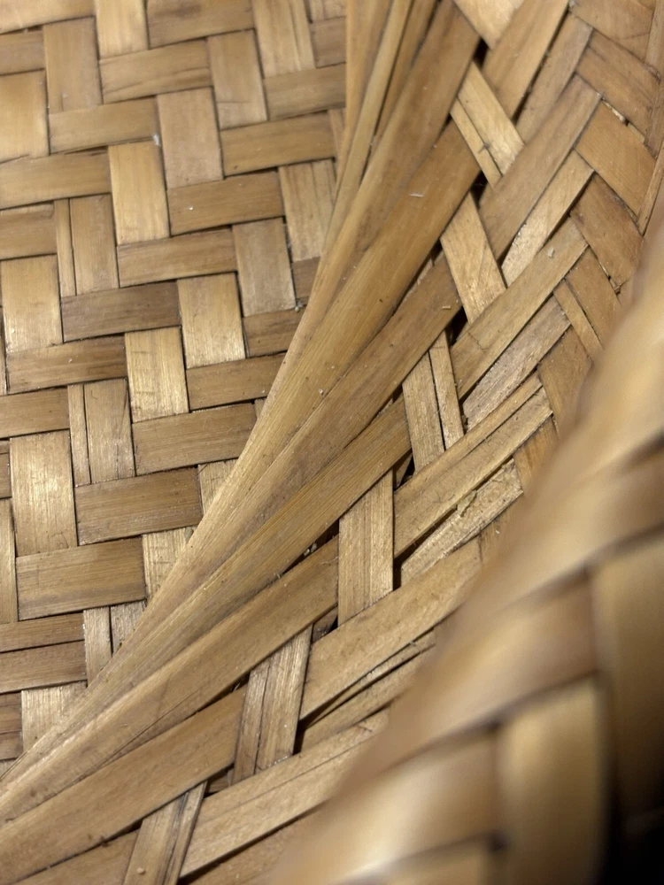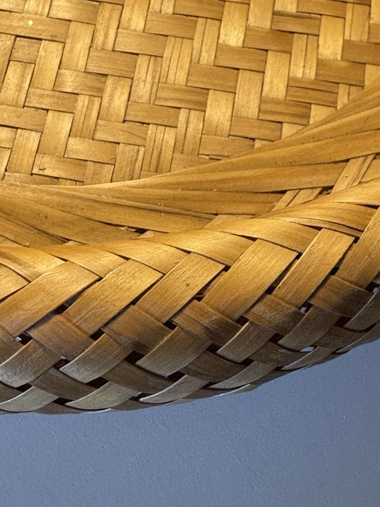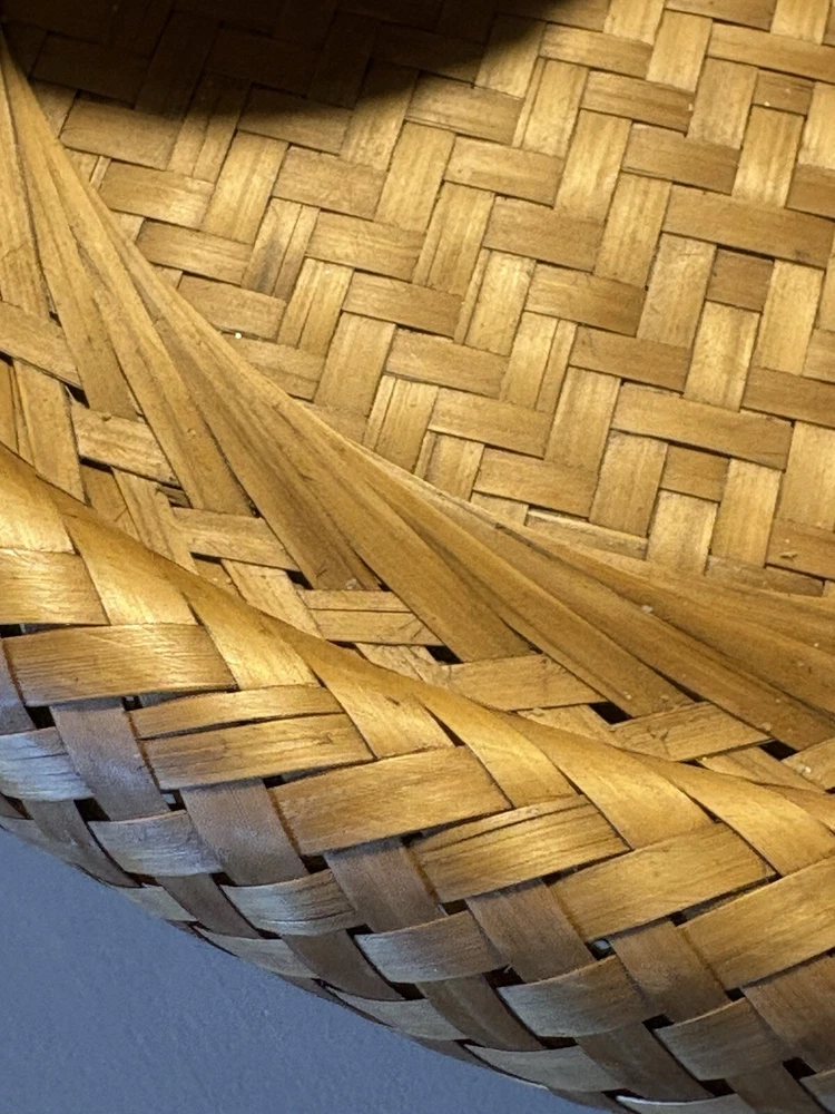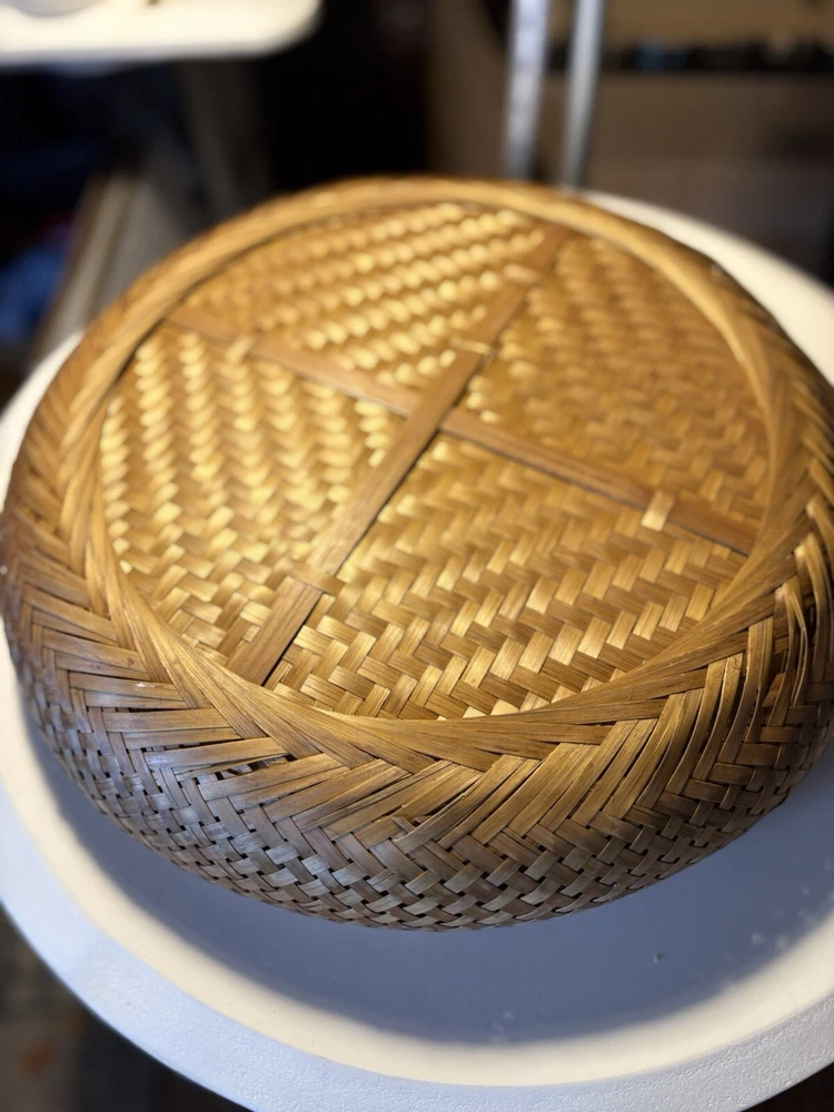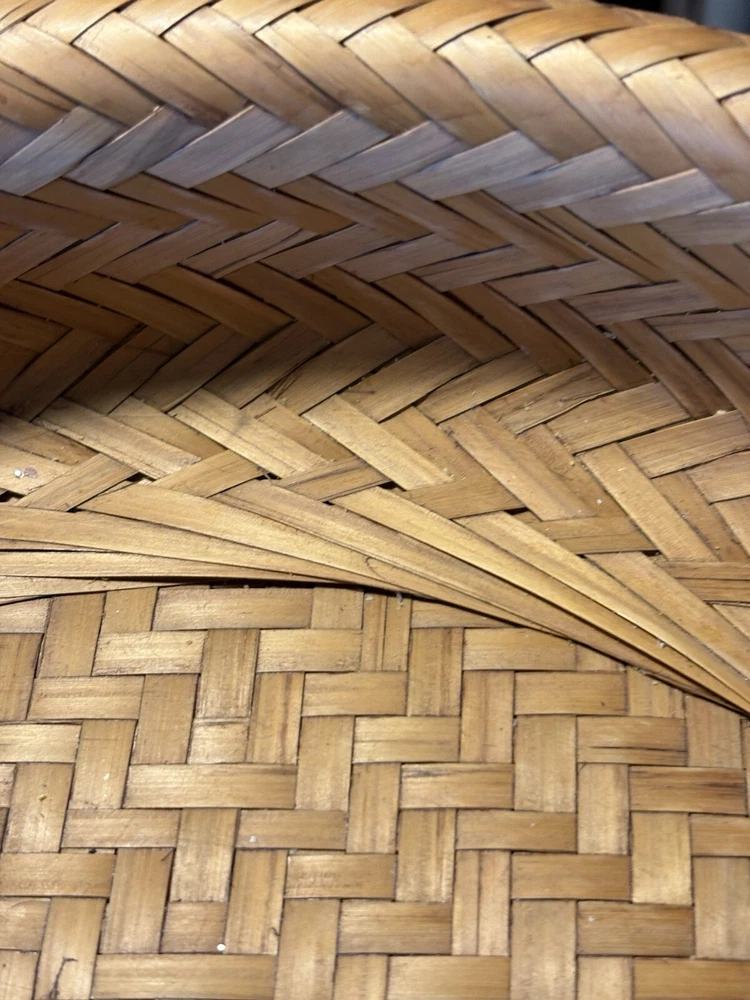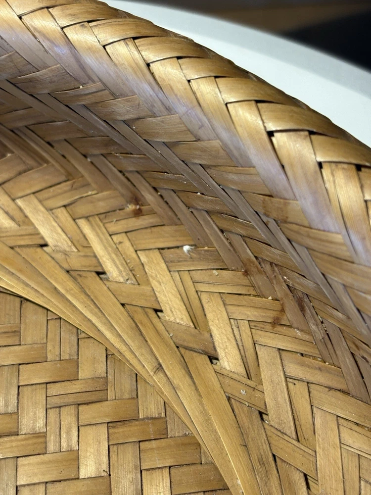 This is a World Market Woven Chip And Dip Tray that measures 14 inches across. It is a large serving tray made of rattan material in brown color. The set includes 2 items, featuring a tray specifically designed for serving chips and dip. No irregularity’s in the condition. Nice! Great for Super Bowl party.
