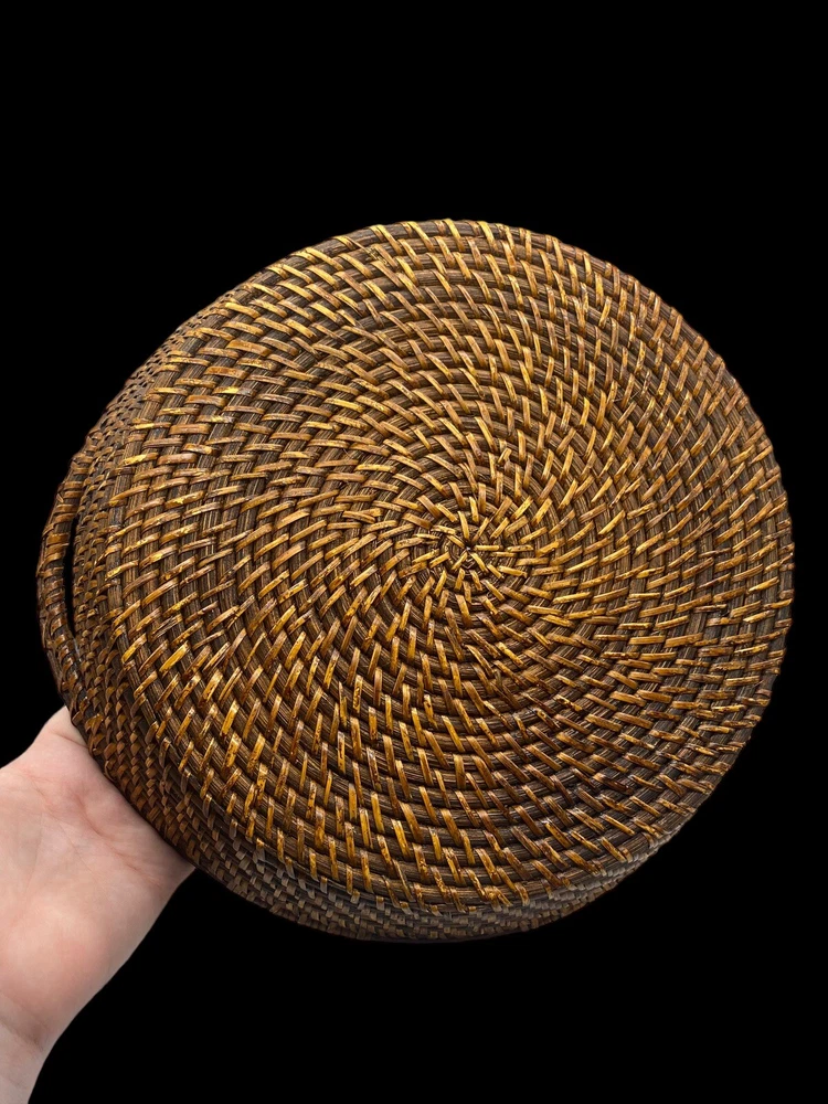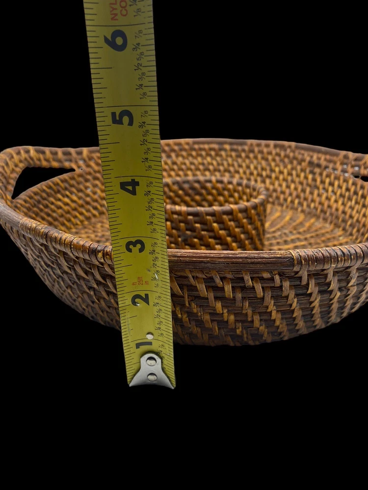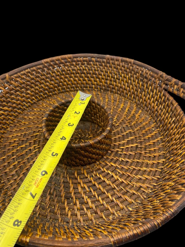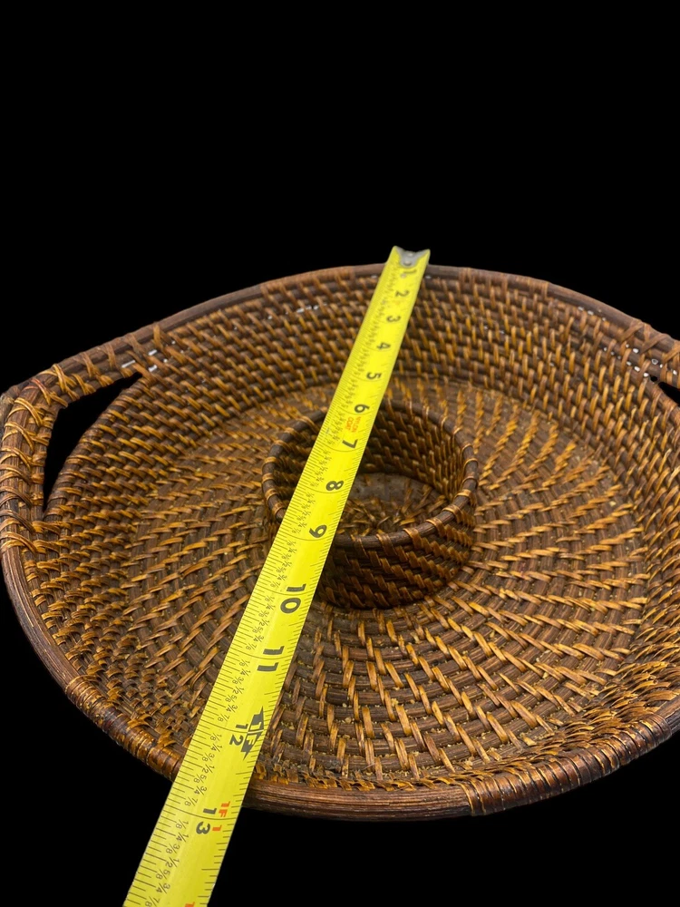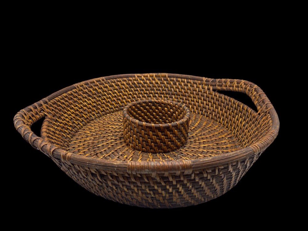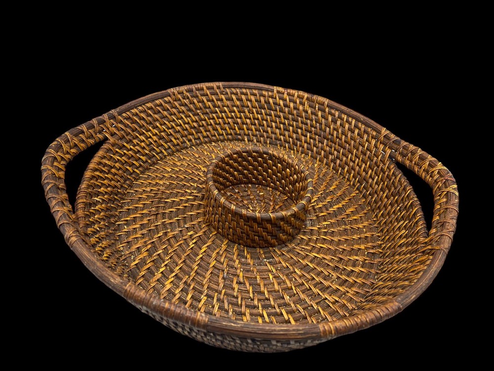 Vintage Bamboo Woven Wicker Brown Round Serving Chip & Dip Bowl Tray 13"...