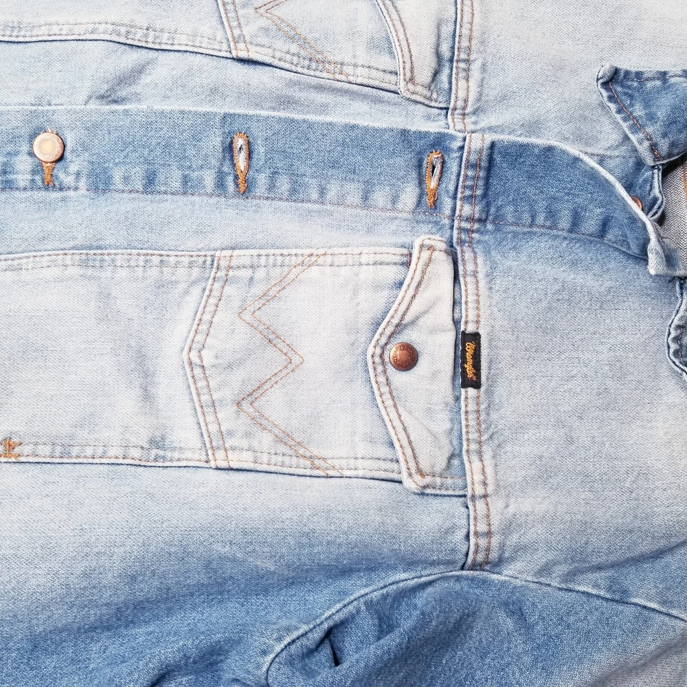 You are bidding on the following item... Wrangler Denim Button Front Trucker Jacket Bleach Dipped Unisex XL Boho Western Please,CHECK ALL PICS BEFORE BIDDING......... preowned condition see photos for...
