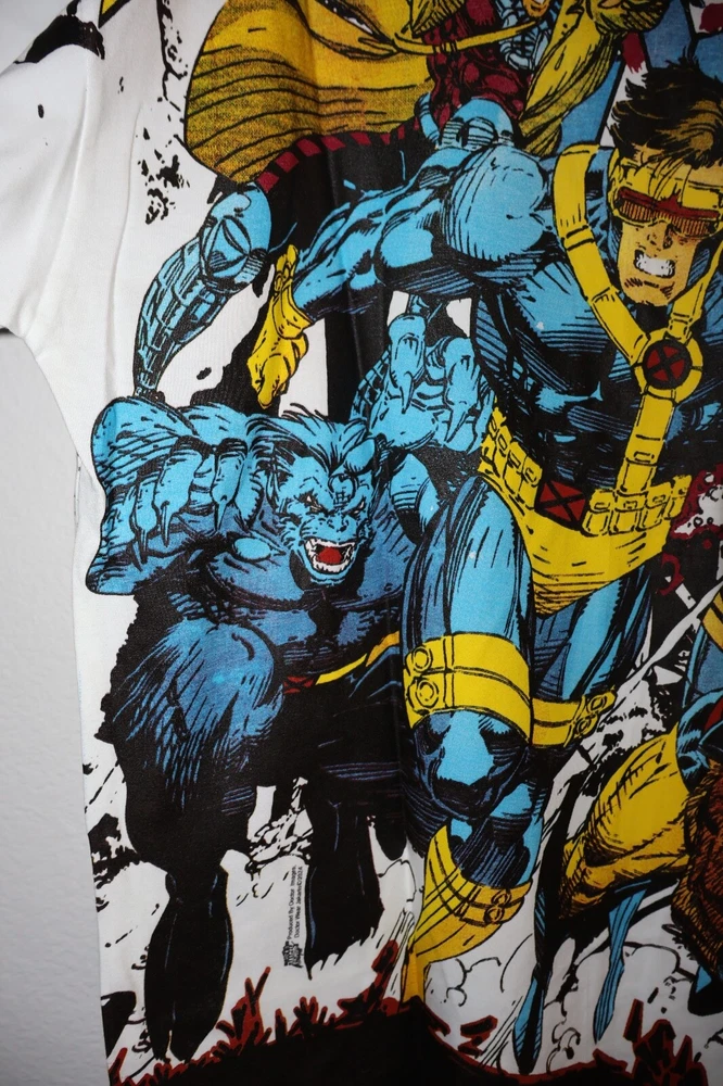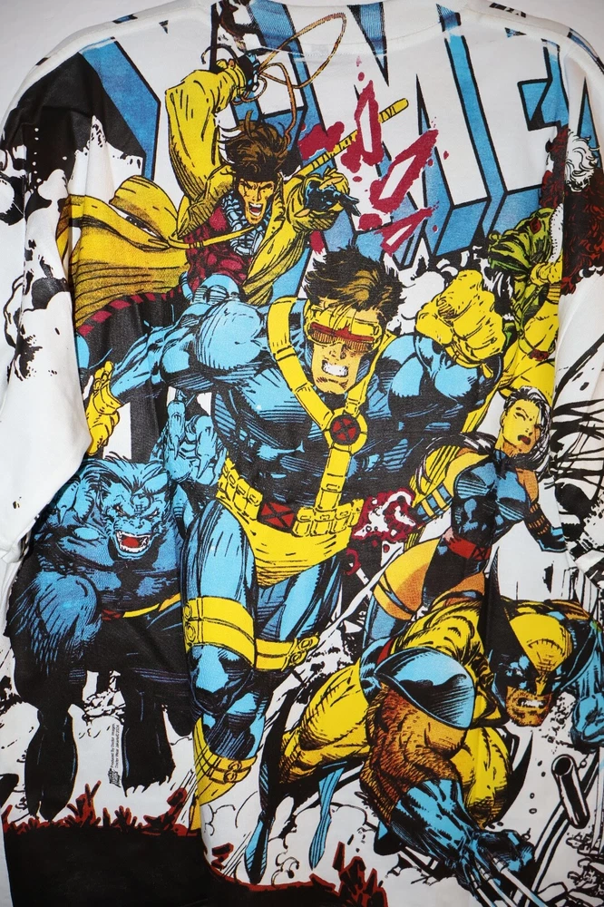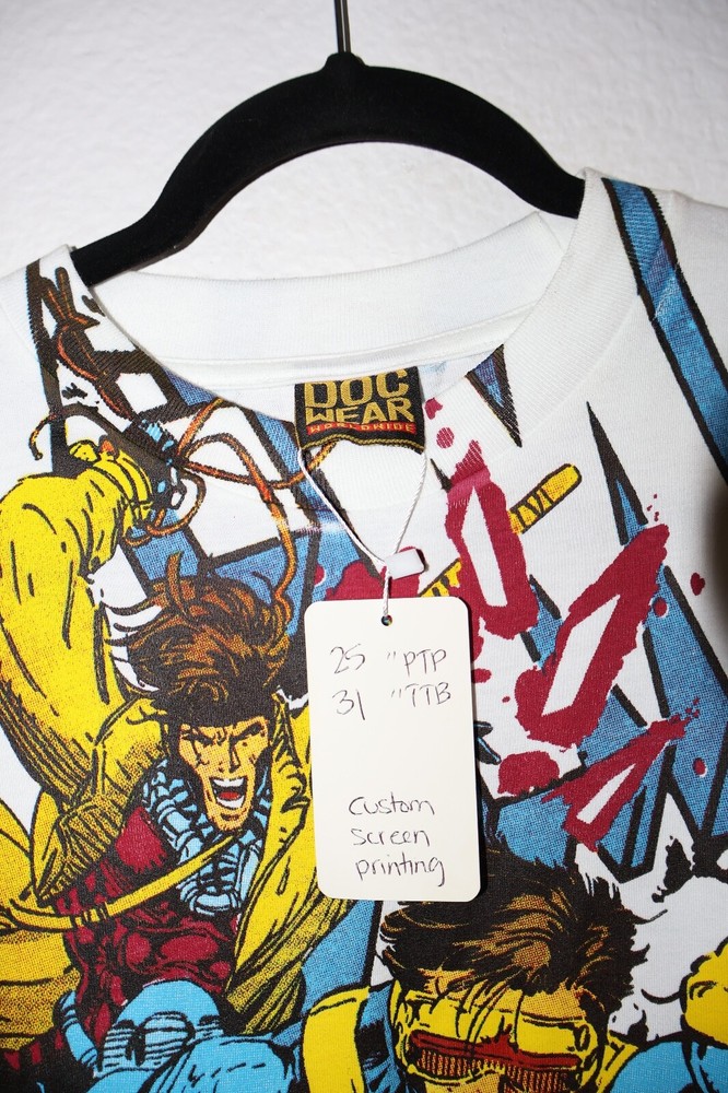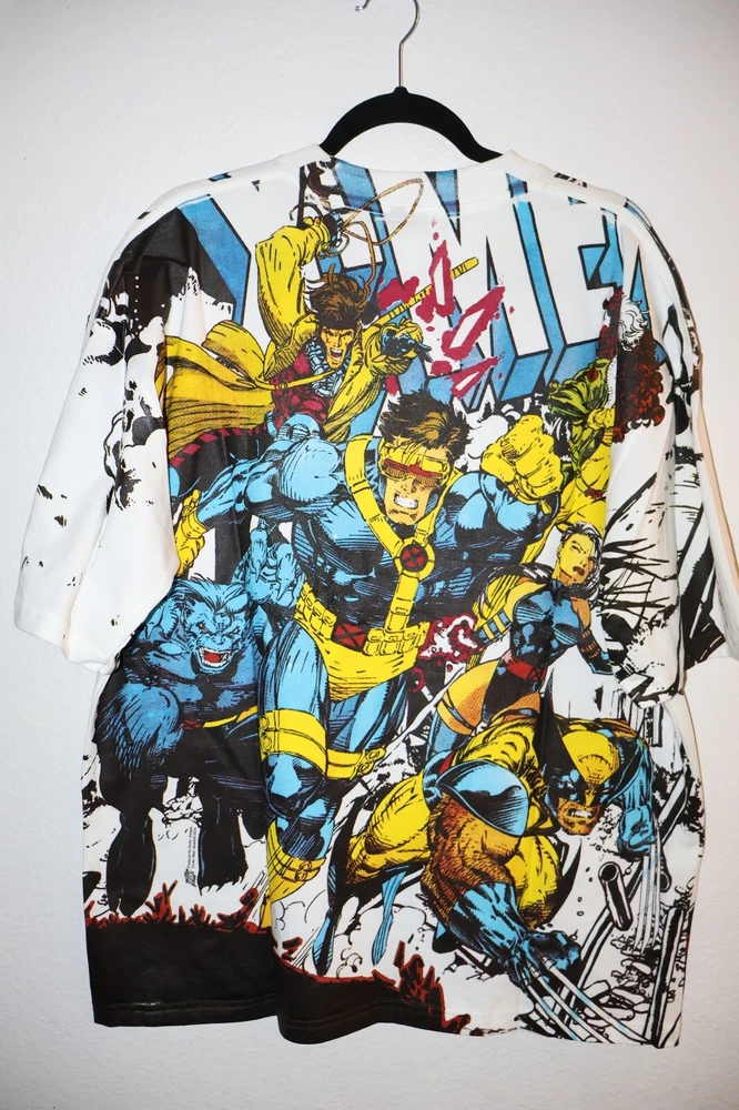 Follow page (Reminiscnt closet)so you don’t miss the most recent drops! 🔥X-Men AOP Shirt MARVEL CYCLOPS GAMBIT WOLVERINE GAMBIT ROGUE XL Custom-Boot BACK AND FRONT GRAPHICS Measurements: 25/31 (PIT TO PIT/ TOP TO BOTTOM) PLEASE READ CAREFULLY! ALL SALES ARE FINAL. CANCELLATIONS NOT ACCEPTED BUY RESPONSIBLY. THANK YOU! This XL-sized T-shirt features an all-over print design showcasing various X-Men characters such as Cyclops, Gambit, Wolverine, and Rogue from the Marvel universe. The shirt is made of cotton material in a solid white color with short sleeves and a regular fit. The 90s and comics-themed shirt is perfect for fans of the X-Men series and superhero enthusiasts looking to showcase their love for these iconic characters.