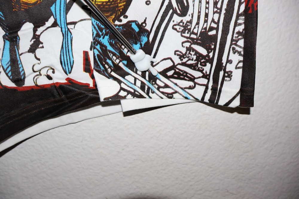 I’m very happy with this purchase! It took 9 days to arrive from purchase (6 days to ship). I love Enel from One Piece so much so being able to get my hands on this shirt made me super happy. The seller even included some free stickers! Thank you to the seller! :]