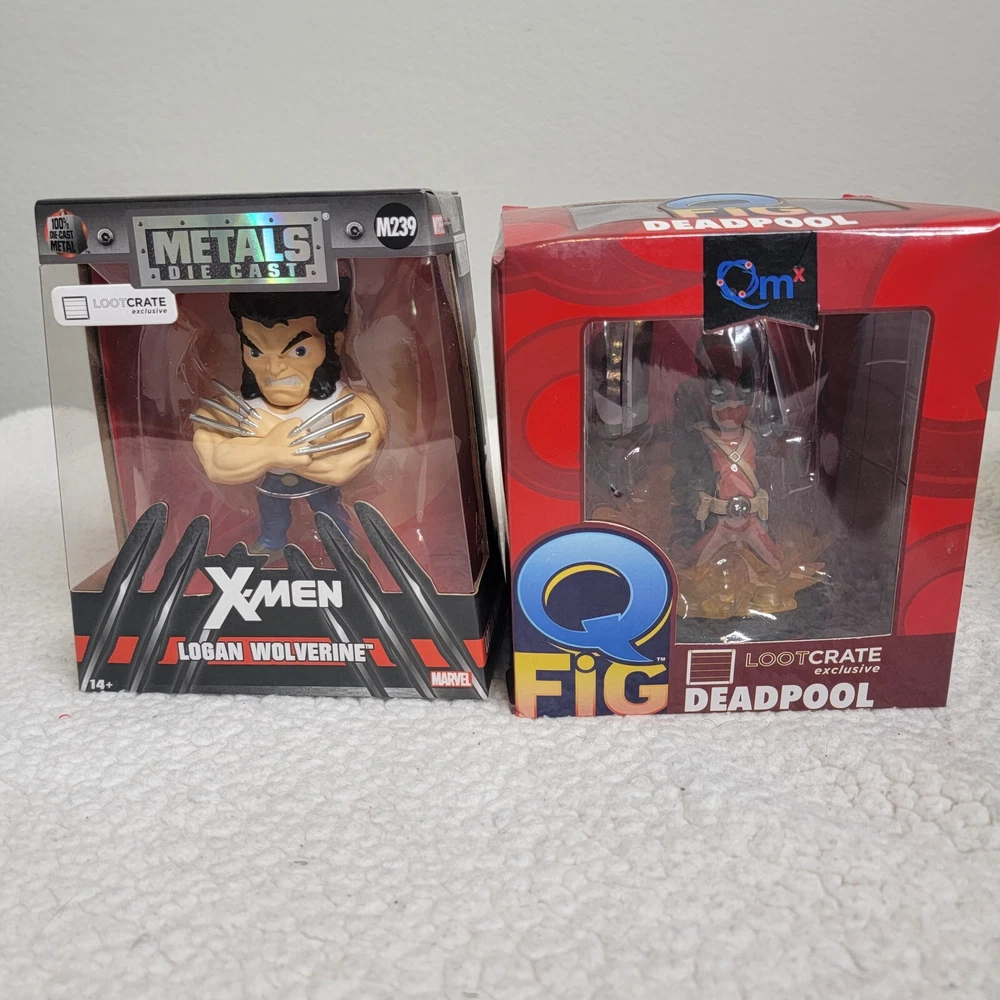 X-Men Logan Wolverine Metals Die Cast M239 LootCrate Exclusive Jada Marvel and C2 Deadpool Collectible LootCrate Exclusive Marvel Qfig Vinyl Figure New, but the are a few blemishes on Deadpool box (pictured).