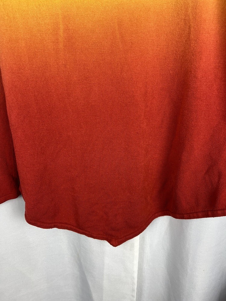 Gold to red ombré sweater orange asymmetrical soft dip dye sunset Size large Front and back come to a point Good condition. There is slight pilling Very soft...
