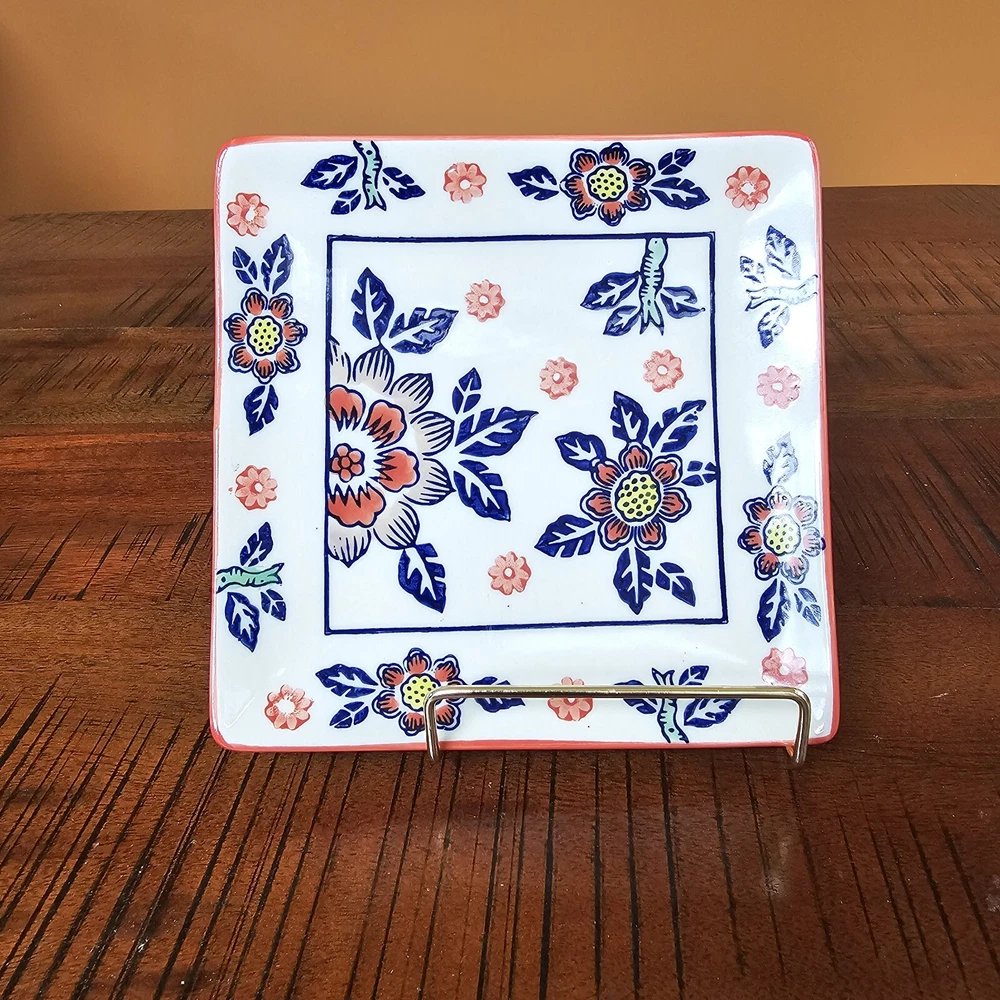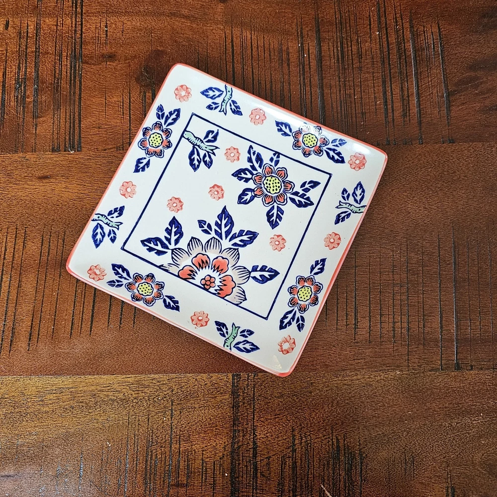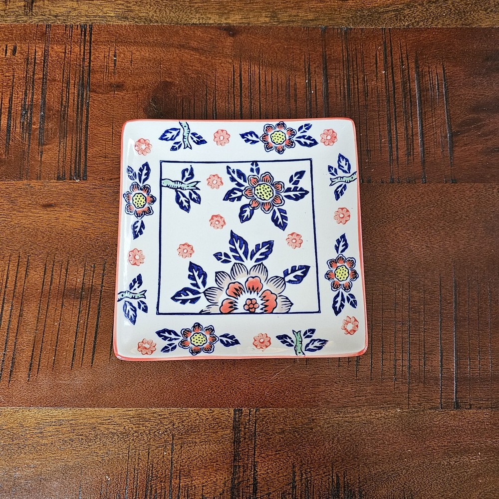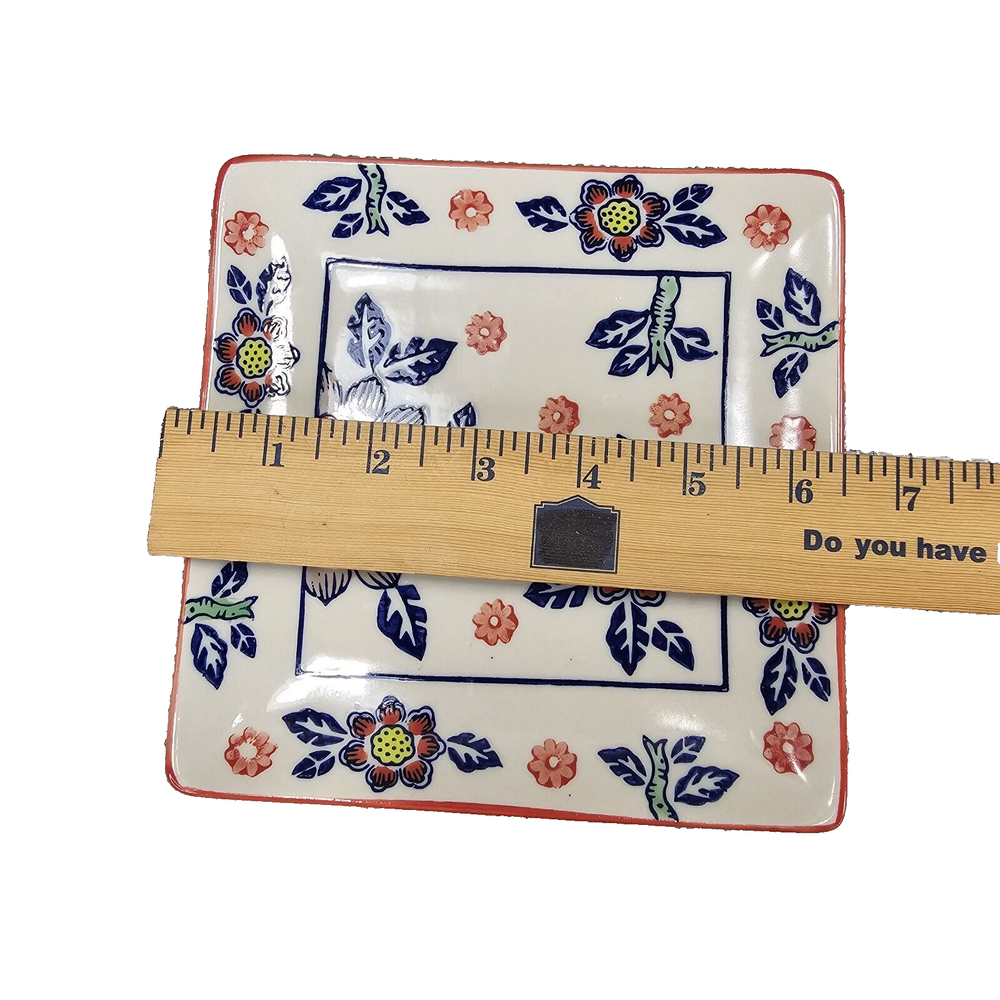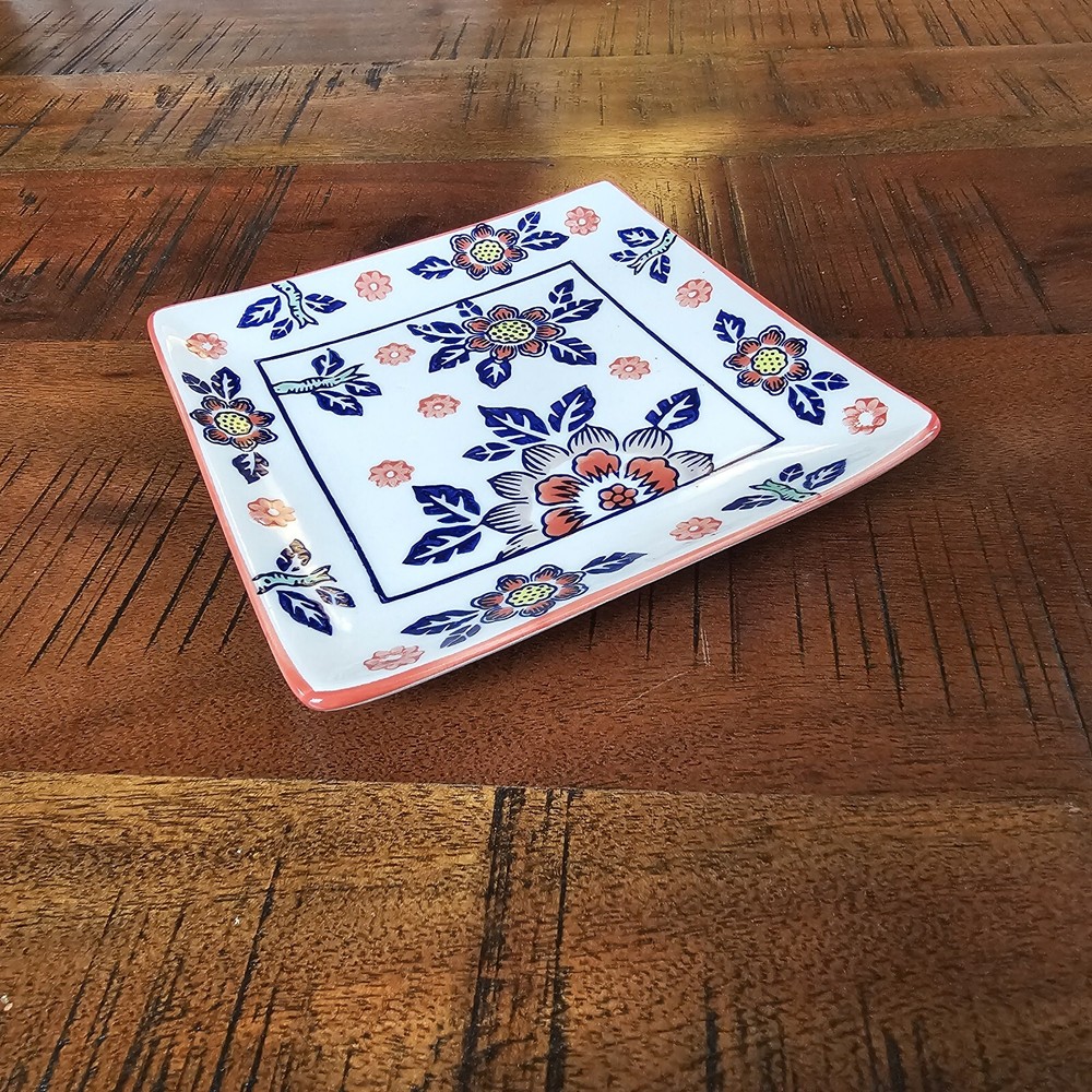 Yokohama Studio Hand Painted Plate Square Sushi Dish, Trinket Lead Free 6"x6"