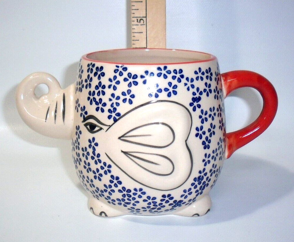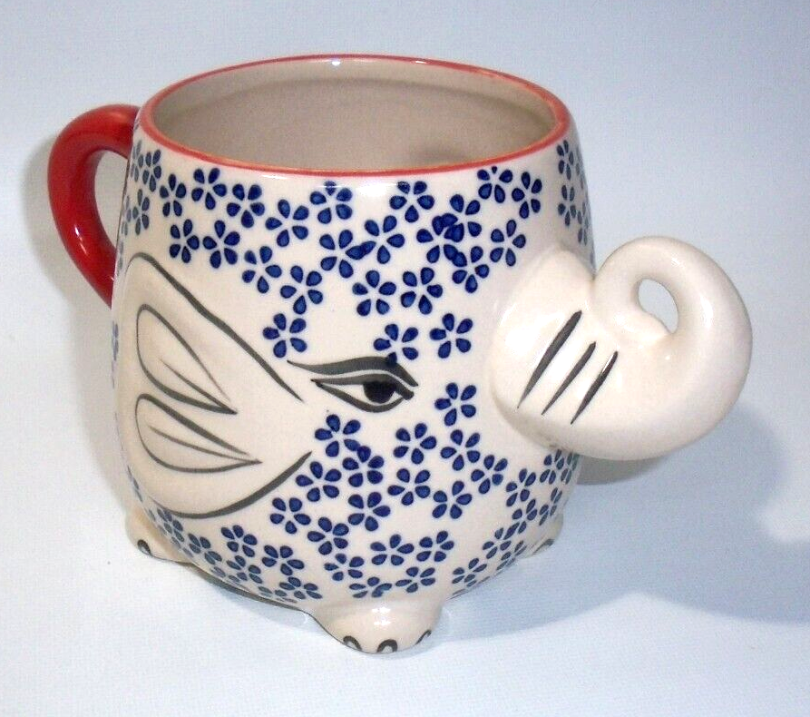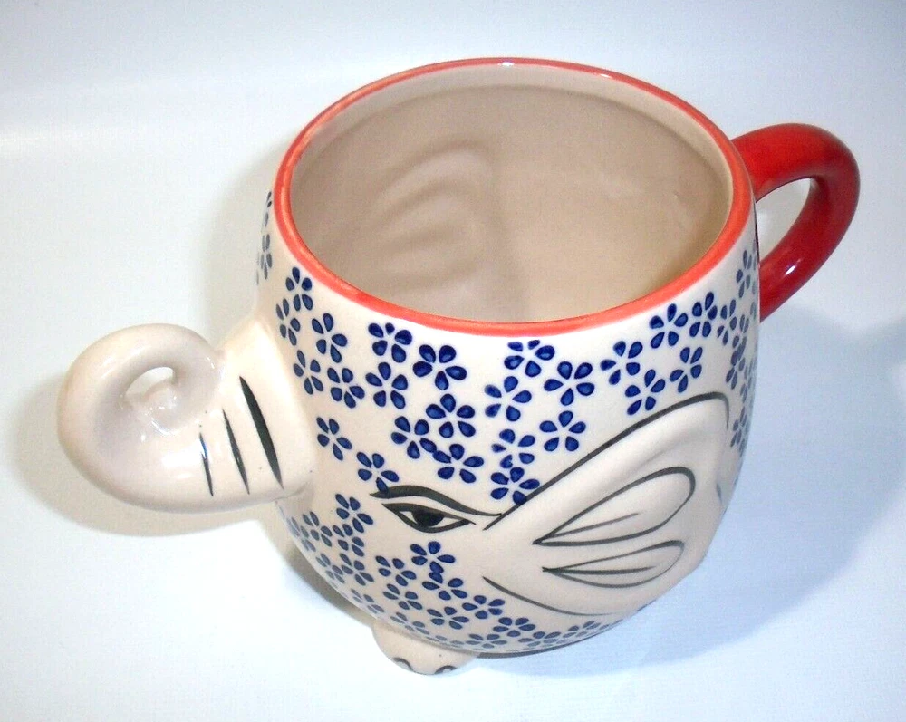 Yokohama Studio Japan Ceramic & Enamel Blue Floral Elephant Mug Cup 20oz. Pre-owned in excellent like new condition. No chips, scratches, utensil marks, color loss, stains, or wear of any kind. Great ...