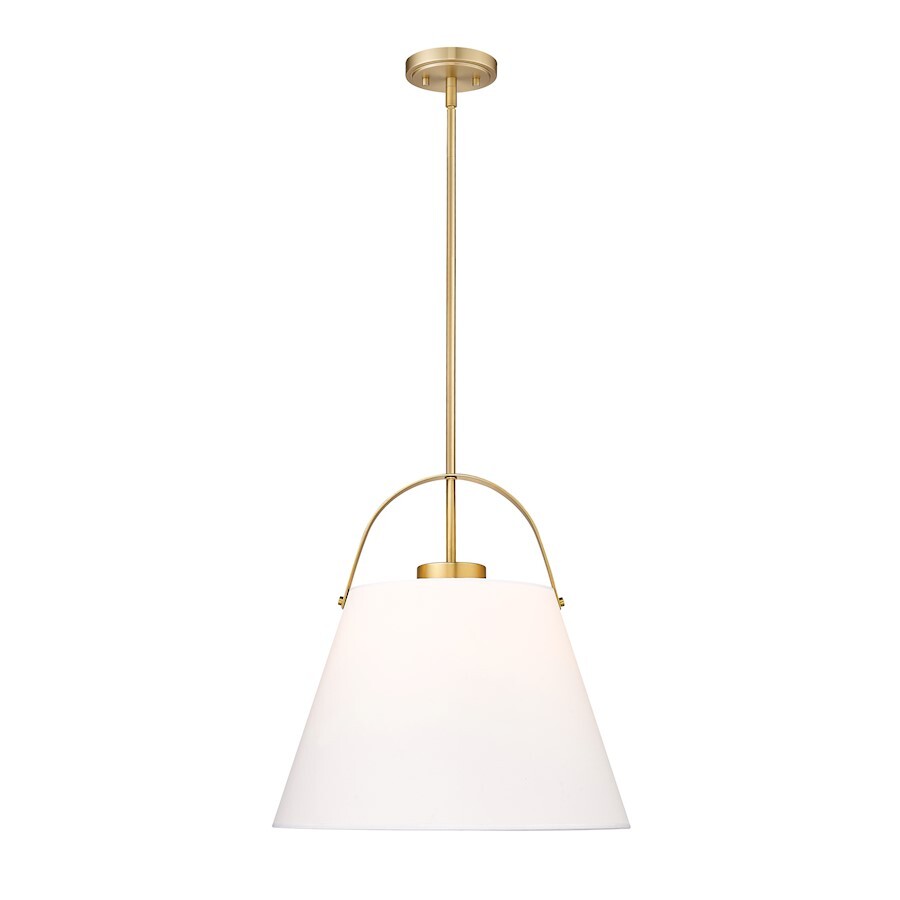 PLEASE CONTACT US FOR BETTER PRICING, ESPECIALLY FOR LARGER ORDERS Z-Lite Z-Studio Linen Pendant 1 Light 18" Pendant, Brass/Ivory - 743P18-HBR Light fixtures offer an unexpected boost to design schemes, and this pendant blending coastal, farmhouse, and casual ambiance is no exception. With a soft ivory finish conical fabric shade and heritage brass finish metal framing, this one-light pendant from the Z-Studio collection delivers a stylish and ornate quality. Choose this pendant to embellish the simple-living motif of a living room or foyer. Part of the Z-Studio Linen Pendant Collection Finish: Heritage Brass Made of Steel Shade Color: Ivory Shade Made of Fabric Style: Transitional, Shade, Farmhouse, Industrial (1) 60W Medium Bulb Bulbs Not Included Our popular one-light pendant from the Z-Studio collection is now available with a white linen shade for a refreshing update that can complement Farmhouse, casual, or coastal décor. The fabric shade and open top provide more omni-directional illumination for a brighter look. The Matte Black, Heritage Brass, or Brushed Nickel hardware finishes add a design-forward touch. Dimmable: Yes Length of Electrical Chain: Rods: 1x3"+1x6"+6x12" Length of Electrical Cord/Wire: 110" Safety Rating: UL/ CUL Listed For Use in Dry Locations Overall Dimensions: 18"(L) x 18"(W) x 18"(H) Canopy Dimensions: 5.1"L x 5.1"W Item Weight: 5 lbs.