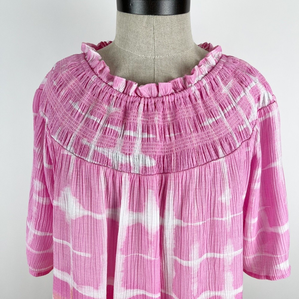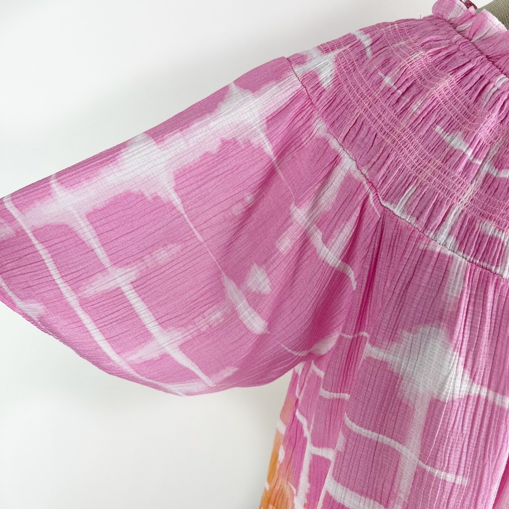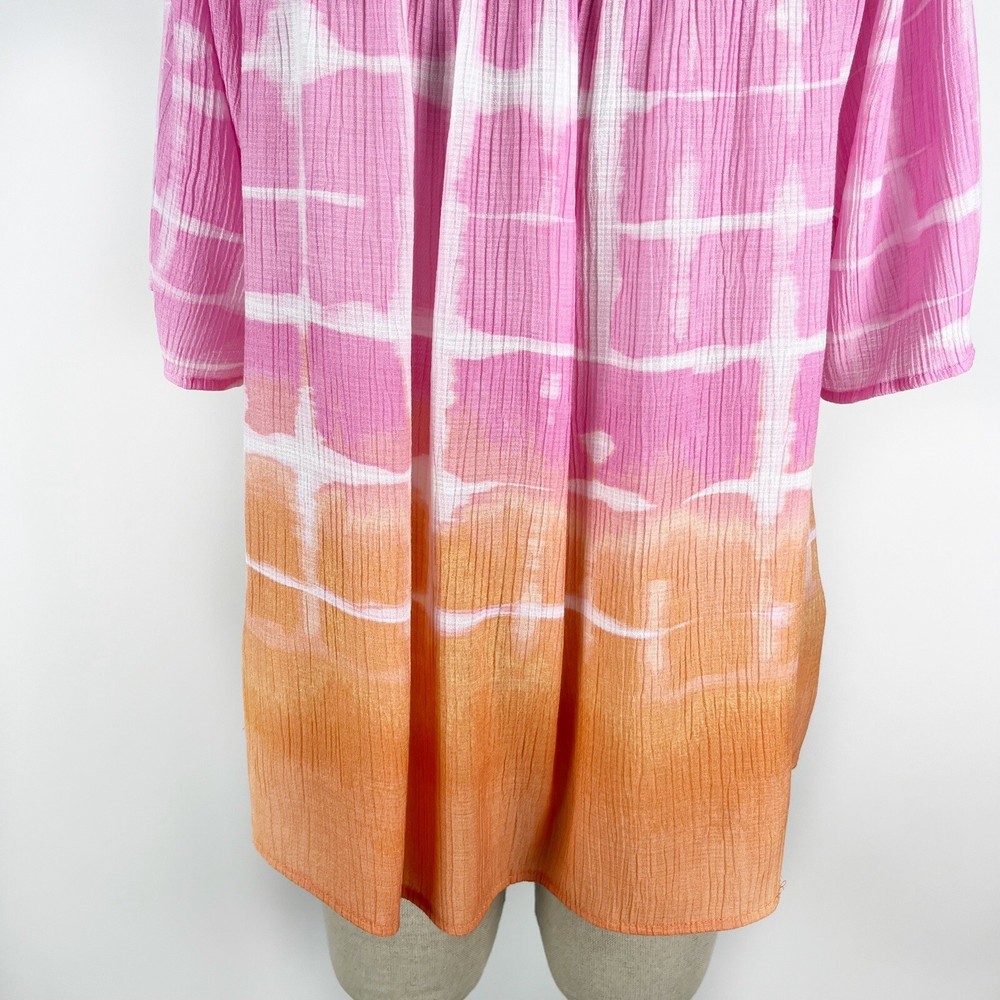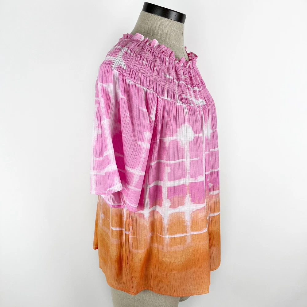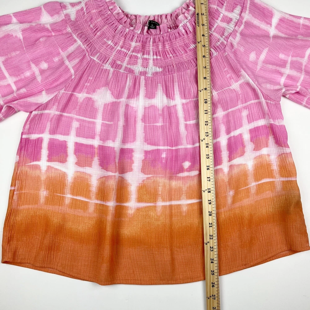 Zac & Rachel Women's Pink Orange Tie Dip Dye Boho Peasant Short Sleeve Blouse Size XL 80% Rayon, 20% Nylon Pre-owned in great condition Underarm to Underarm: 23" Length: 25" Questions? Please ask! L...