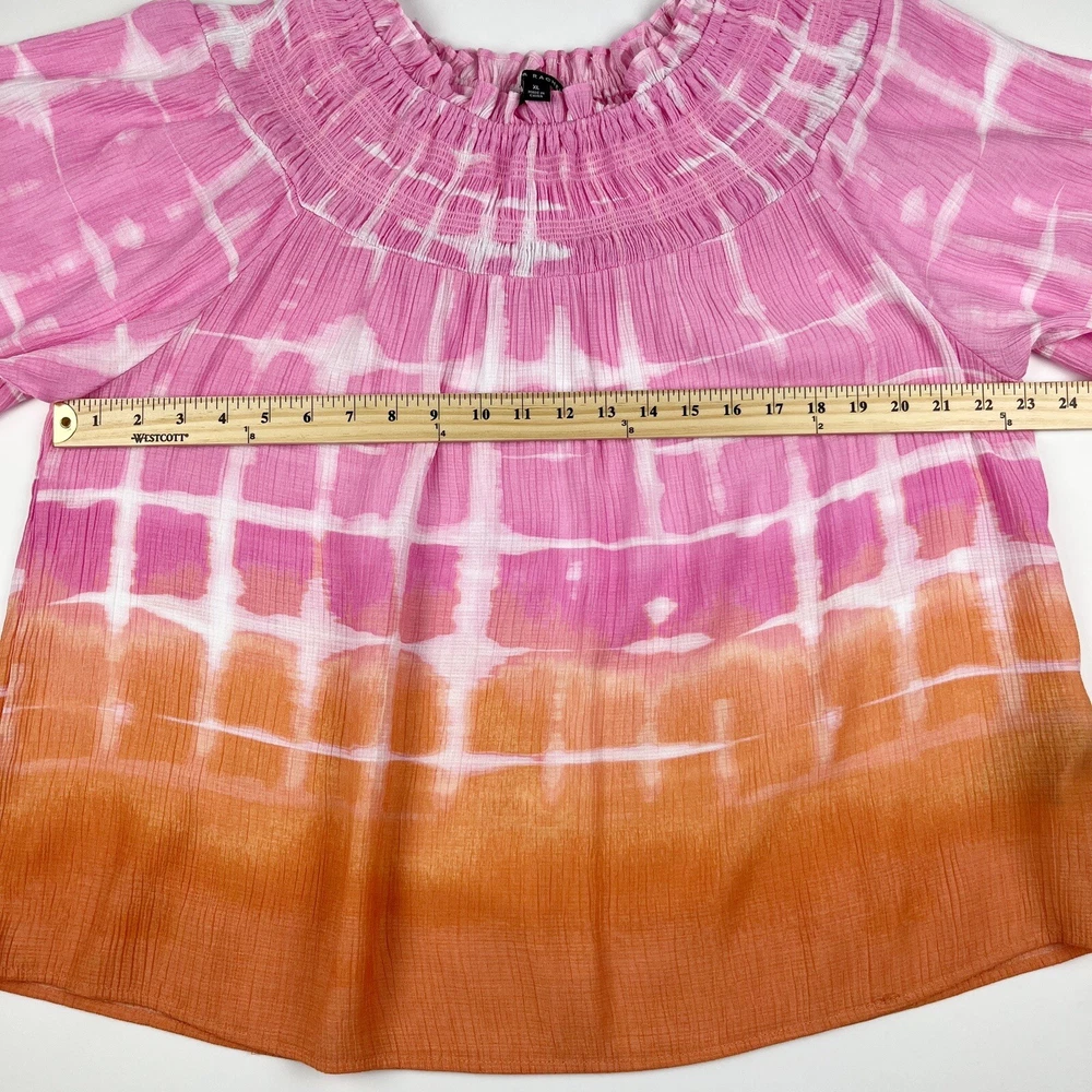 Zac & Rachel Women's Pink Orange Tie Dip Dye Boho Peasant Short Sleeve Blouse Size XL 80% Rayon, 20% Nylon Pre-owned in great condition Underarm to Underarm: 23" Length: 25" Questions? Please ask! L