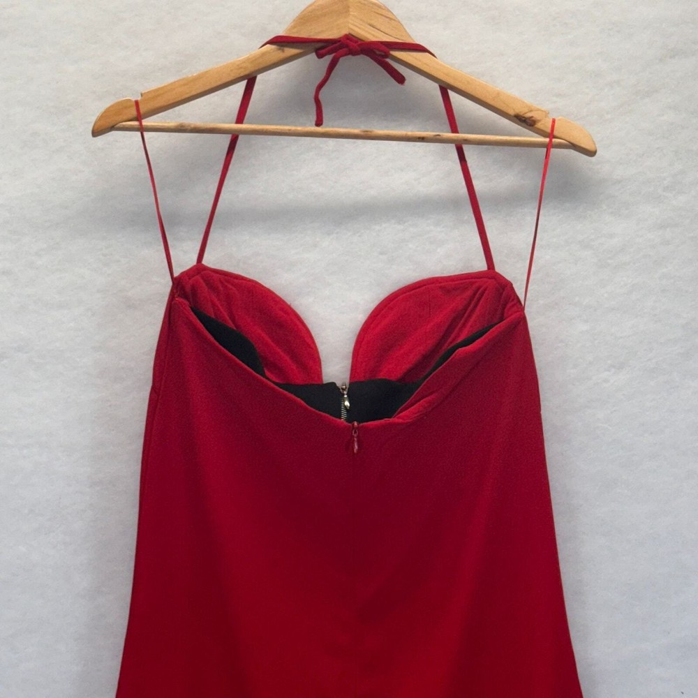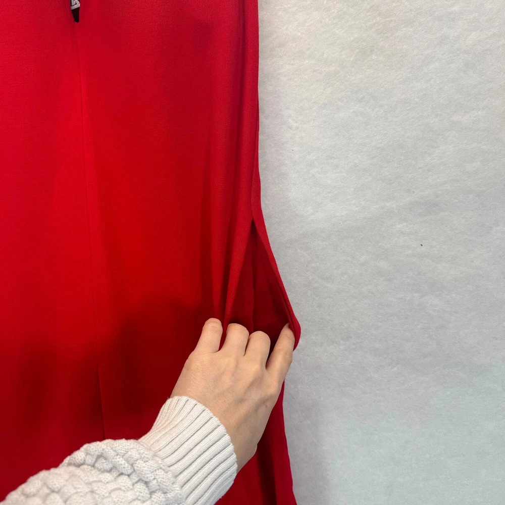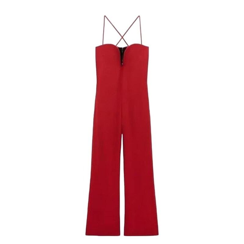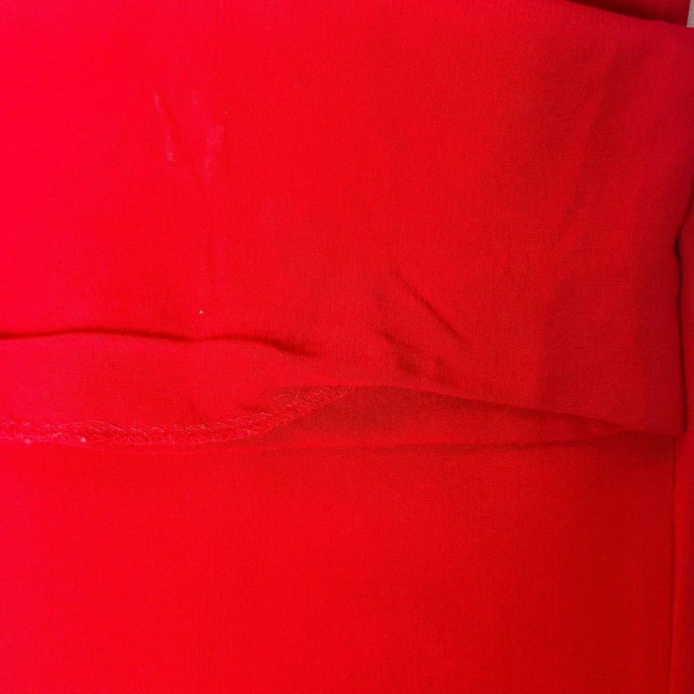 This Zara Studio jumpsuit is a stunning retro-inspired piece! The vibrant red color and sweetheart neckline make it perfect for Valentine’s Day or a night out. The halter style and wide-leg cut create a flattering, elongating silhouette. Though gently used with minor stains and loose stitching at the hem, it’s still a fantastic find—Zara’s premium quality shines through. Love the hidden back zipper for a sleek finish!