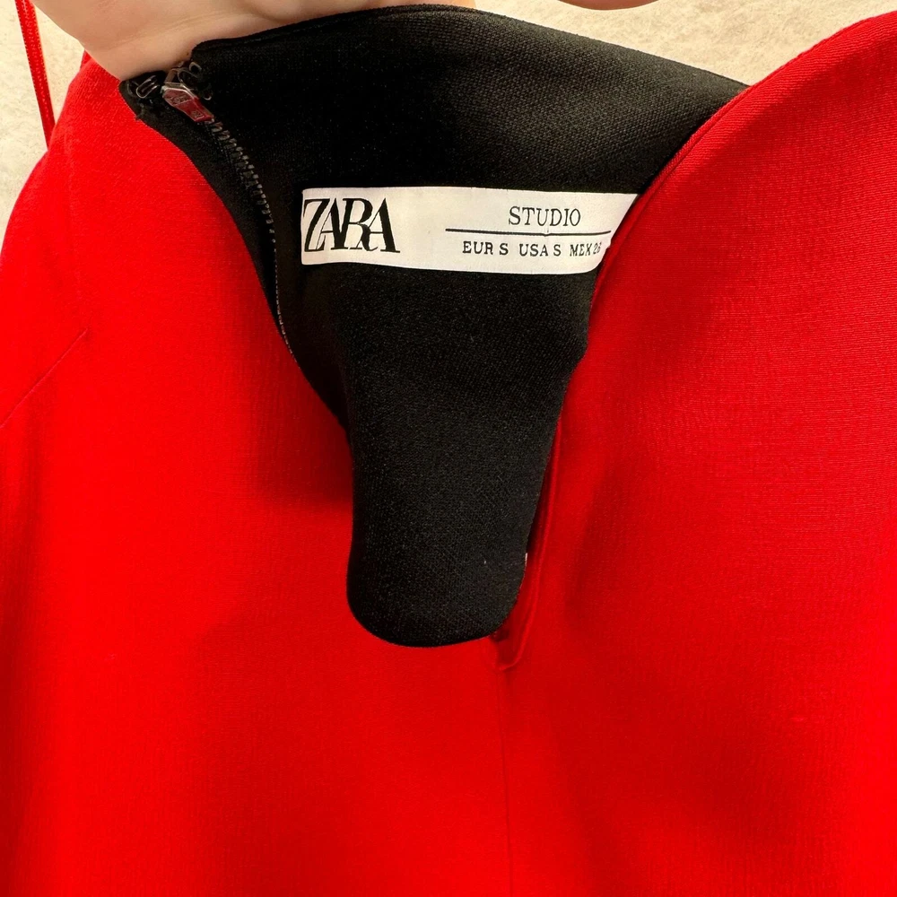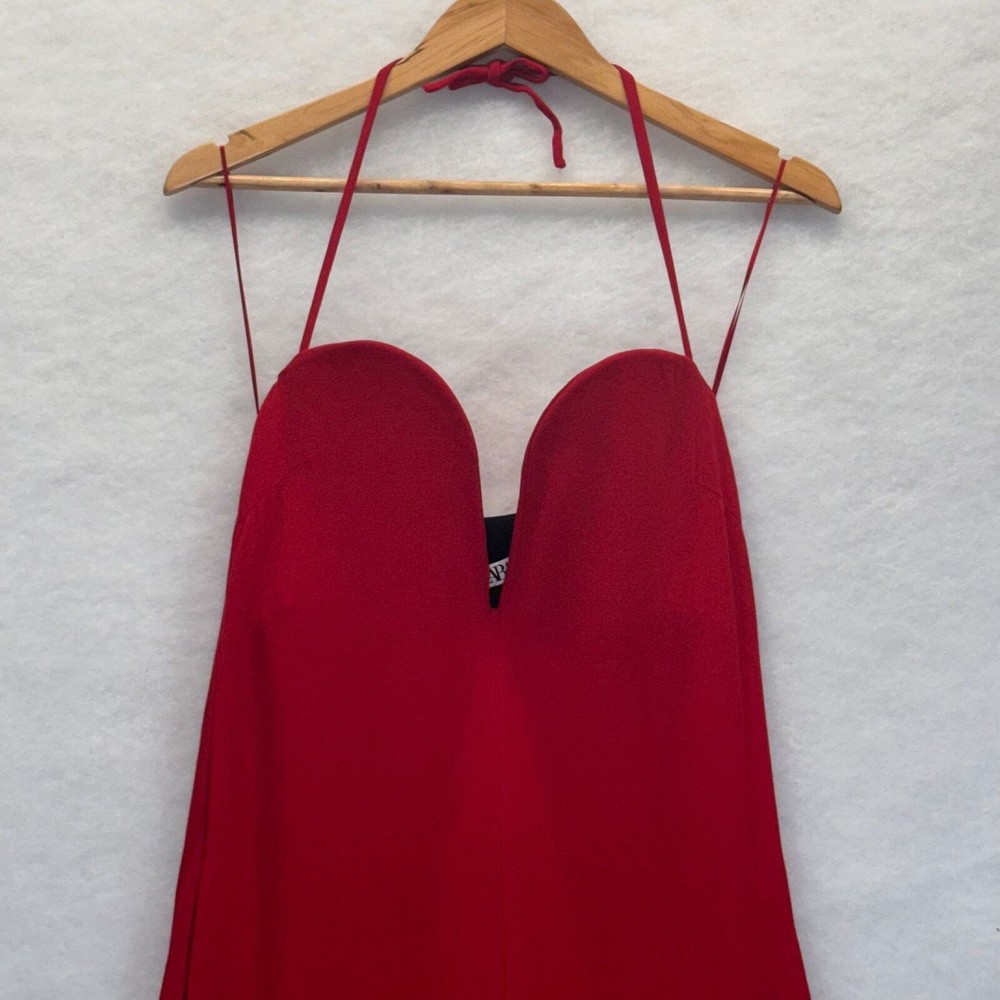 <![CDATA[<div>Zara Studio Collection SweetHeart Neckline Red Jumpsuit Sz S 80s Valetines Day Condition: Gently used - minor imperfections (1) some stains are visible on the hem; (2) the hem has slight unstitched areas that may need repair. Vibrant red Halter-style jumpsuit with a sweetheart neckline, creating a flattering silhouette. Wide-leg cut that gives a flowy and relaxed look while elongating the legs. Zara Studio – a premium line from Zara known for high-quality pieces. Features a hidden zipper at the back for easy wear. Side pockets. 89% polyester / 11% elastane 15 Pit to Pit / 16 Waist / 52 Length From Shoulder to Hem / 31 Inseam (All measurements are provided in inches, taken while the garment was laid flat, and are approximate) Our home is smoke-free. We ship items the next business day after payment!