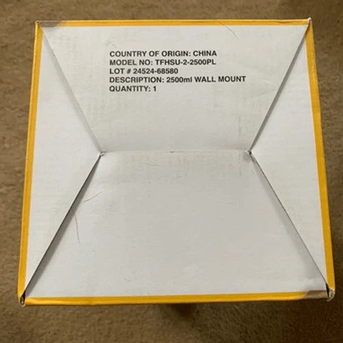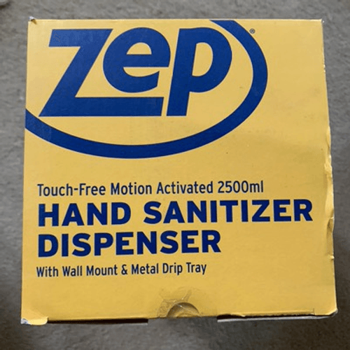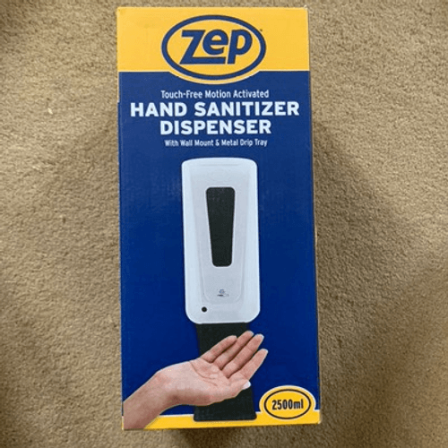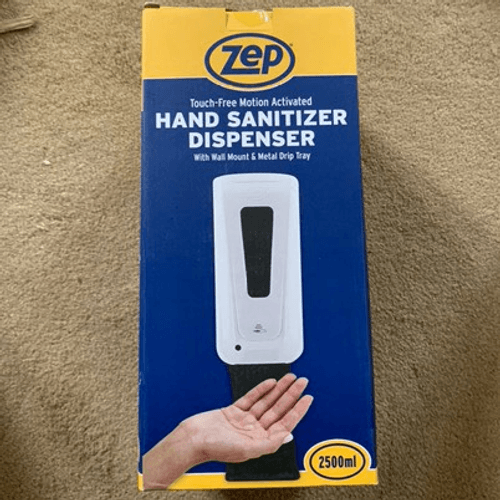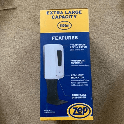 Zep Hand Sanitizer Dispenser XL Capacity With Wall Mount & Dip Tray. Model TFHSU-2-2500PL. New in box. 2500 ml. Trap Door Refill Cover, Automatic Counter, LED Light Indicator, Touchless Dispenser. Batteries not included. Corner of box has slight crease. (3)