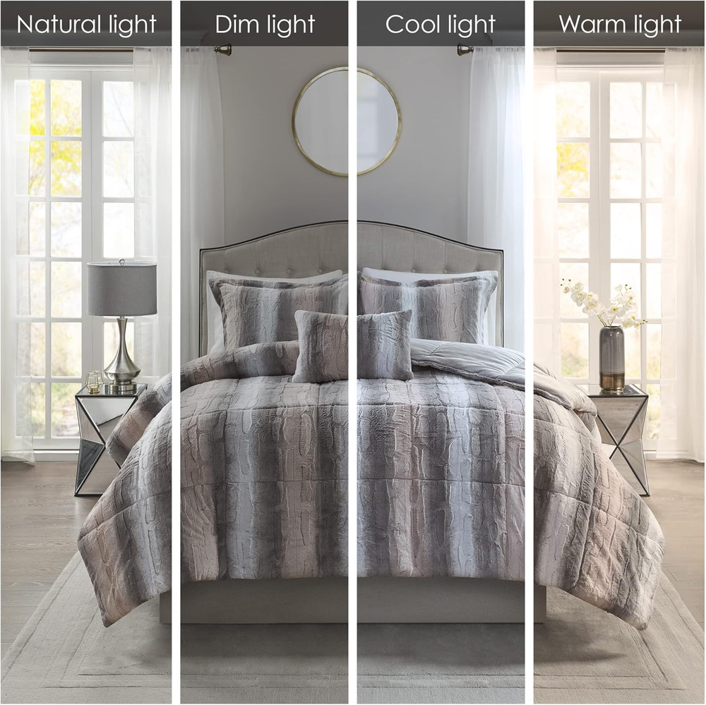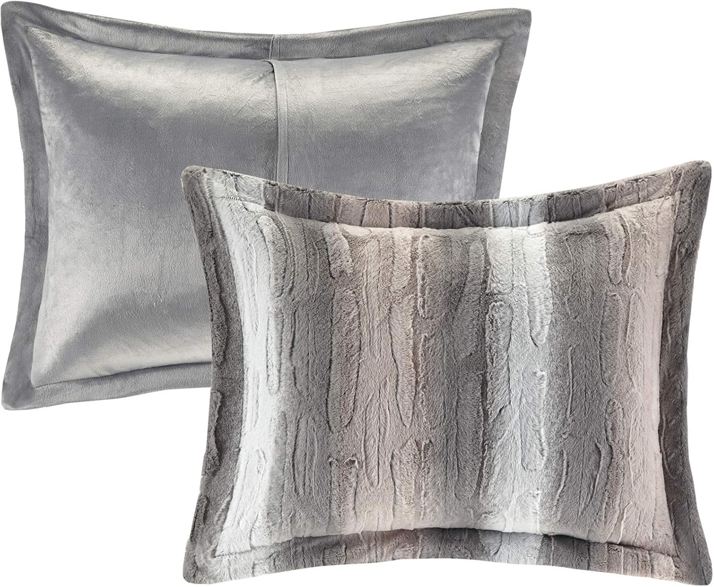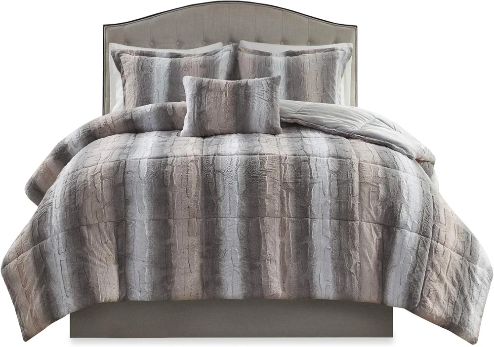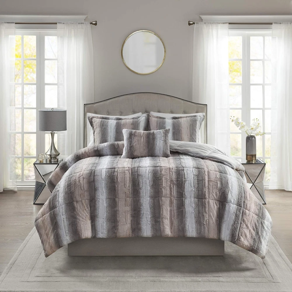 Menu Other Items Feedbacks About Us Contact Us Add To Favorites Zuri Soft Plush Comforter Set, Faux Fur Animal Stripes Design, Faux Mink on the Reverse, Modern All Season Bedding Set with Matching Sham, King, Blush/Grey 4 Piece 100% Long Faux Fur to Solid Mink The Madison Park Zuri comforter features a luxuriously soft Faux Fur and reverses to a solid luxe microfiber Faux Fur. A warm blanket and a glamorous accent to your home with Madison Park’s animal pattern Zuri Collection Exceptionally soft Faux Fur mimics the warmth and texture of real Faux Fur, while the marble print gives the set a beautifully stunning look. Set includes: 1 Comforter: 104"W x 90"L, 2 King Shams: 20"W x 36"L + 2"D, 1 Decorative Pillow: 14"W x 20"L Care instructions: machine washable The Madison Park Zuri comforter features a luxuriously soft Faux Fur and reverses to a solid luxe microfiber Faux Fur. The bedding set includes 1 comforter, 2 shams, and 1 decorative pillow to complete the look. Item Specification Item model number MP10-6295 Style Comforter Set Assembly required No Color Blush/Grey Pattern Animal Print Fabric Type 100% Long Faux Fur to Solid Mink Material Polyester Country of Origin China Item dimensions L x W x H 90 x 104 x 1.5 inches Item Weight 10 pounds Batteries required No Theme Modern Size King Seasons All Refill fiber Number of Pieces 4 Product Dimensions 90 x 104 x 1.5 inches Product Care Instructions Machine Wash Included Components 1 Comforter, 2 King Shams1 Decorative Pillow Dimensions Shipping Returns Additional Info Product Dimensions: 104.0 inches x 90.0 inches x 1.5 inches. Weight: 10.0 lb Fast shipping is very important for us. Our standard shipping service is FREE. Your order will be shipped within 1-3 business days upon full payment received. Most items are delivered within 3-5 business days, however, please allow 3-10 business days. We are shipping only to USA. We only ship to the confirmed Paypal address. We reserve the right to cancel any order for any reason at any time. We are not responsible for undeliverable addresses. We offer a 30 day return policy from checkout winning date. Your satisfaction is guaranteed! If for any reason you are unhappy with your item, just return it within 30 days for a full refund, minus shipping cost. Please contact us prior to initiating a return so that we can issue you a refund authorization. Items defective upon receipt must be packaged in their retail packaging as if new and returned with a detailed description of the problem. Return shipping fees are not refundable. We reserve the right to decline any returns if the above guidelines are not followed. All of our items, unless otherwise stated, will only run on 120 volts. Please check to make sure your country complies with these specifications. If you have a problem or question regarding your transaction please contact us before leaving any type of feedback. We will work with you to resolve any problem you may have.