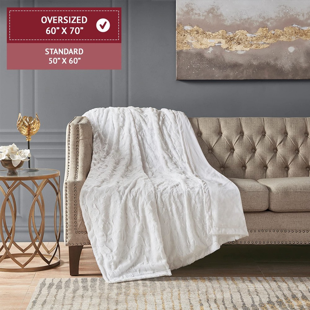 The Zuri Blanket features a luxuriously soft faux fur and reverses to a solid luxe microfur. A warm blanket and a glamorous accent to your home with ’s Zuri Oversized Faux Fur Throw. Exceptionally soft faux fur mimics the warmth and texture of real fur, while the marble print gives the throw a beautifully stunning look. 1 Throw: 60"W x 70"L Care Instructions: Machine Wash. Minor shedding is expected with faux fur material and should subside after 3-4 washes