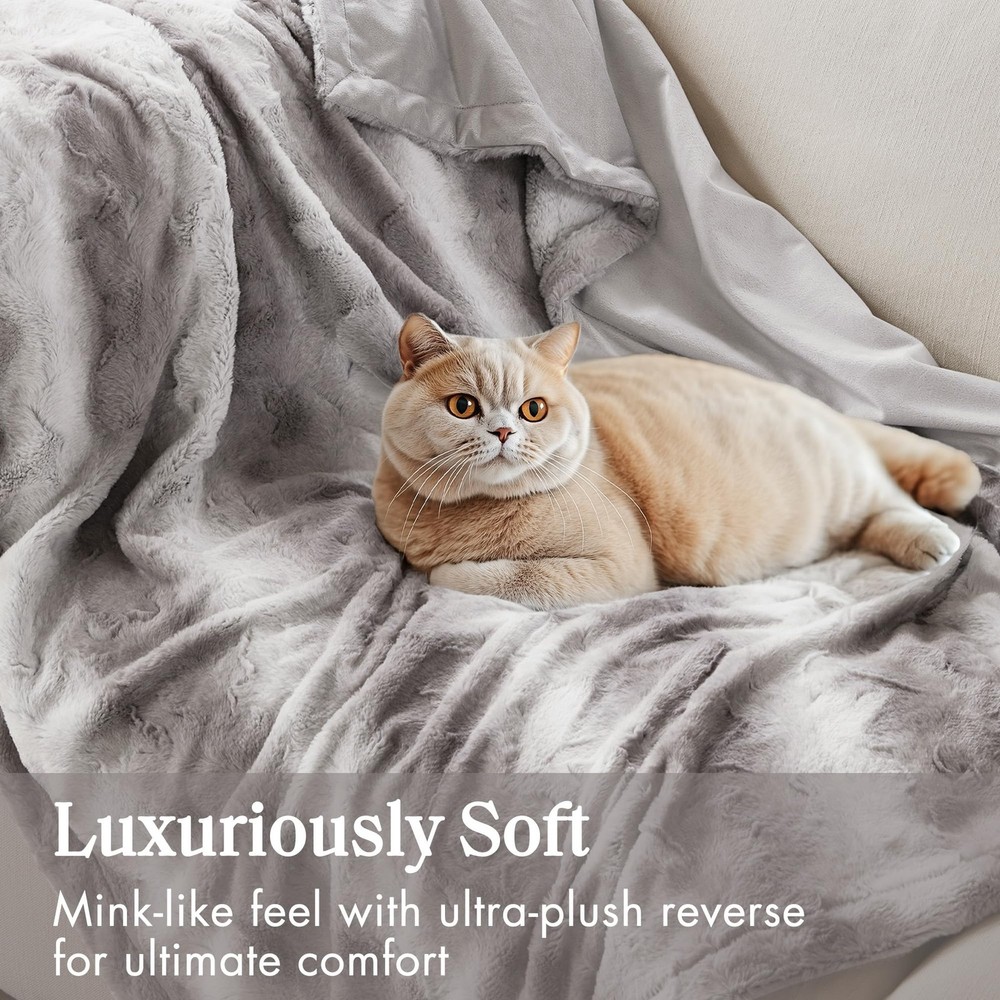 Oversized Soft Faux Fur FACE: FAUX TIP DYED BRUSHED FAUX FUR, 100% POLYESTER REVERSE: SOLID FAUX MINK, 100% POLYESTER 1 Throw:60x70" MACHINE WASH COLD, GENTLE CYCLE, AND SEPARATELY. DO NOT BLEACH. TUMBLE DRY LOW, REMOVE PROMPTLY, DO NOT IRON. IF THERE IS NO FREE MOVEMENT IN THE WASHER OR DRYER, USE LARGE CAPACITY COMMERCIAL WASHER/DRYER.