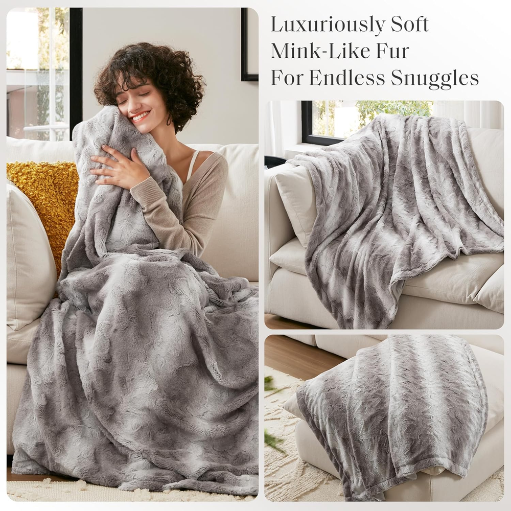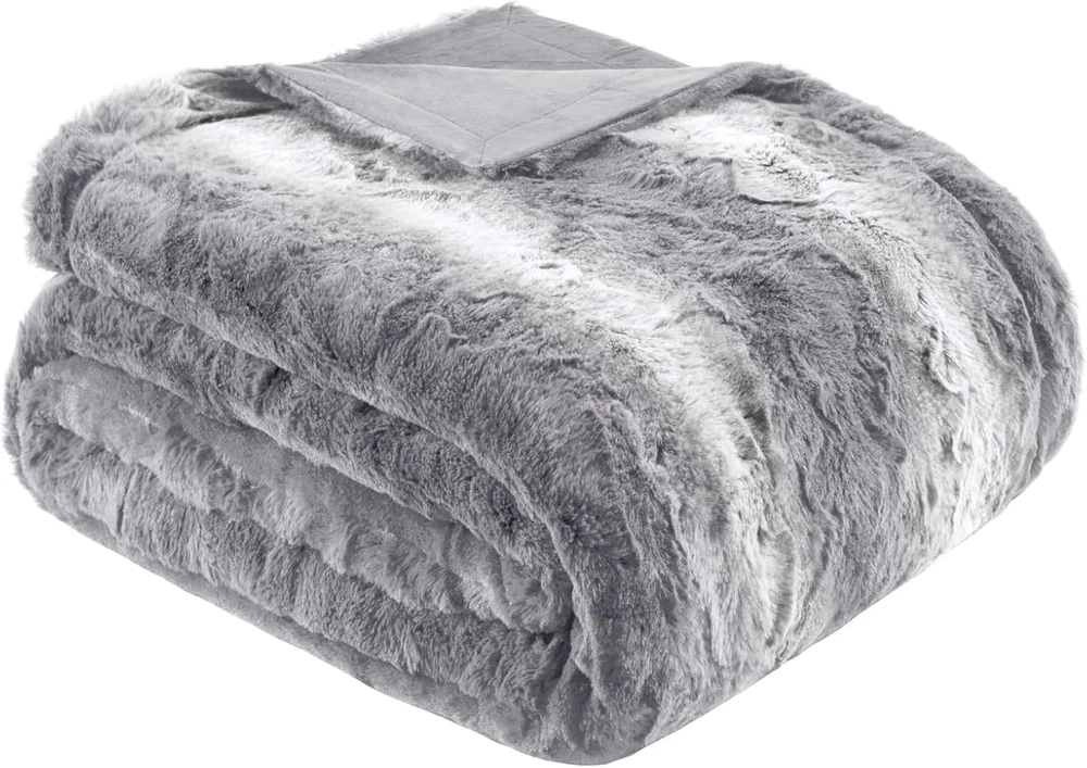 Poly Fur Oversized Soft Faux Fur FACE: FAUX TIP DYED BRUSHED FAUX FUR, 100% POLYESTER REVERSE: SOLID FAUX MINK, 100% POLYESTER 1 Throw:60x70" MACHINE WASH COLD, GENTLE CYCLE, AND SEPARATELY. DO NOT BLEACH. TUMBLE DRY LOW, REMOVE PROMPTLY, DO NOT IRON. IF THERE IS NO FREE MOVEMENT IN THE WASHER OR DRYER, USE LARGE CAPACITY COMMERCIAL WASHER/DRYER. The Madison Park Zuri oversized throw features a luxuriously soft faux fur and reverses to a solid faux mink. This faux fur throw is the perfect modern update and adds a glamorous accent to your home. This throw is machine washable for easy care and OEKO-TEX certified, meaning it does not contain any harmful substances or chemicals to ensure quality comfort and wellness.