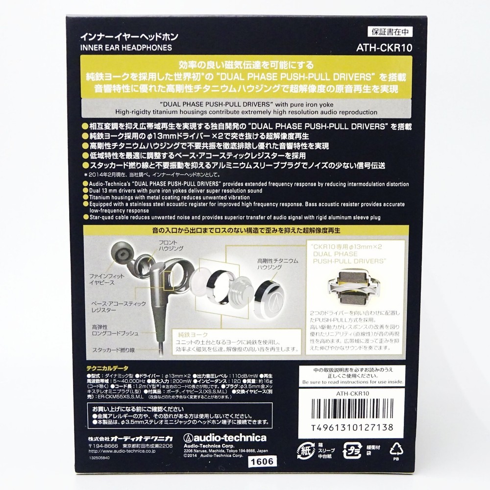 Dear valued customer Thank you for visiting our site. we dispatch items from japan. We provide our services based on our motto 'Your complete satisfaction is our ultimate goal.' Therefore, please make your bid with ease. TEST TITLE Description of item This item is 100% authentic, Japanese goods. Please be assured that we package each item carefully without causing damage. Condition: Brand new Brand: audio-technica MPN: ATH-CKR10 Material: Titanium, others.. Color: Black Type: Canal type Shape: Earphone Sound sensitivity: 102db Cable length: 1.2m Size: 11.1 x 22.8 x 17.8cm Weight: 16g Language: Japanese Returns ・We accept return items up to 60 days after the item has arrived. However, the customer is responsible for return shipping feets. ・Return Policy & 100% Guaranteed Item that are faulty beyond the description given on our site should be refund. Please contact us by e-mail if items delivered are faulty. However please send the item back to us. About Us Thank you for your seeing my page. Please feel free to question if there is an uncertain point on this page. I cordially answer it. International Buyers - Please Note: ・Import duties, taxes and charges are not included in the item price or shipping charges. These charges are the buyer’s responsibility. ・Please check with your country’s customs office to determine what these additional costs will be prior to bidding/buying. ・These charges are normally collected by the delivering freight (shipping) company or when you pick the item up - do not confuse them for additional shipping charges. ・We do not mark merchandise values below value or mark items as “gifts” - US and International government regulations prohibit such behavior.