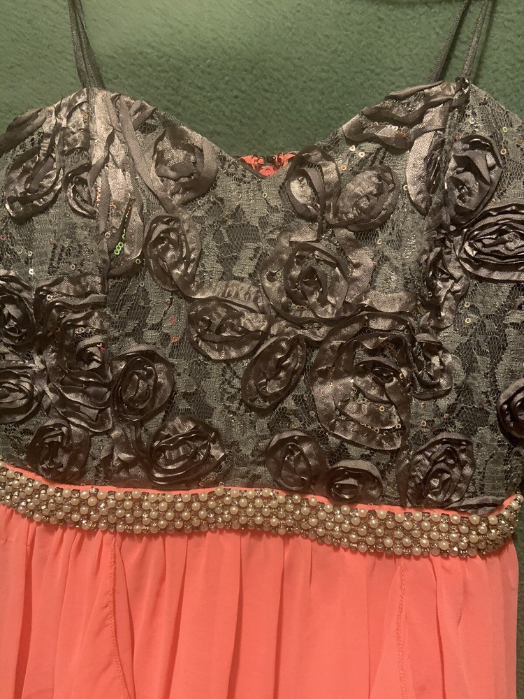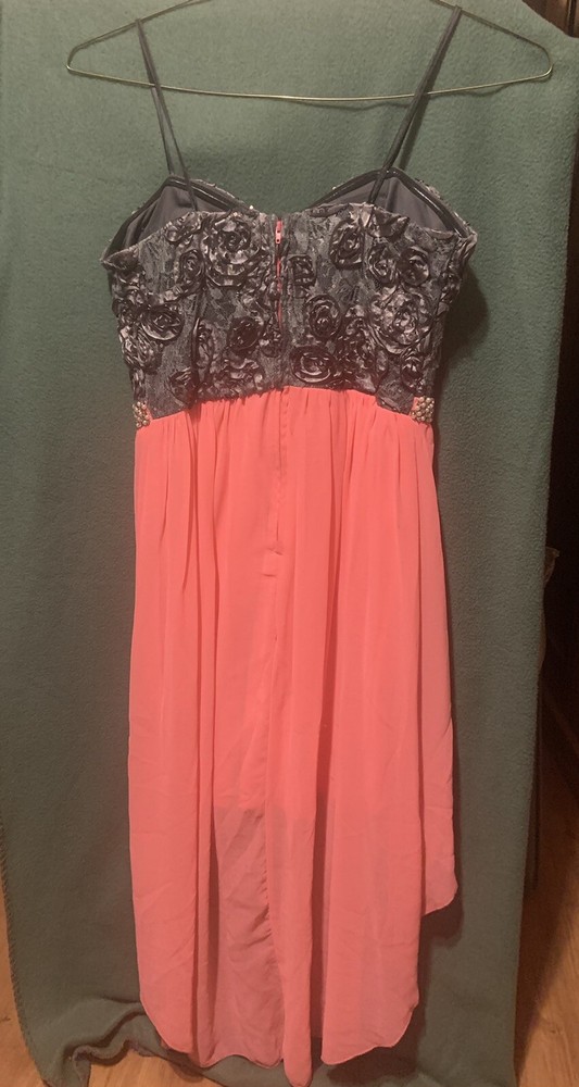 This stunning ball gown by City Studio is perfect for any formal occasion. The dress features a sweetheart neckline and sleeveless design, with a hi-low hemline that adds a touch of elegance. The peach and gray color combination is both unique and chic, and the dress is adorned with lace, straps, beading, and a zip closure for added flair. Made from high-quality polyester with a soft and comfortable fabric type, this dress is both stylish and comfortable. The dress is designed for juniors and comes in size 11, making it a perfect fit for most women. The dress is perfect for any theme and will make you feel like you are in the city.