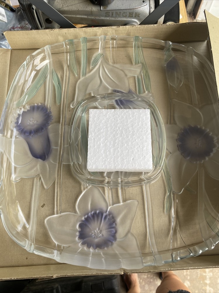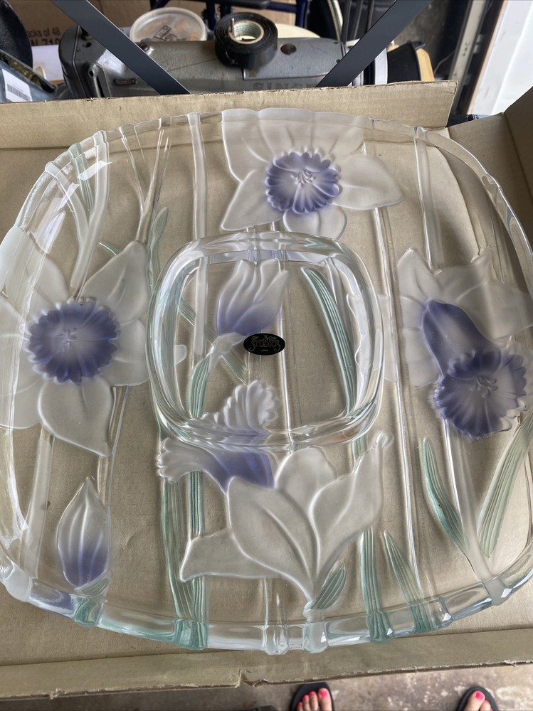 crystal clear studios narcissus sectional platter/hand Painted 15” X 12 1/2”....