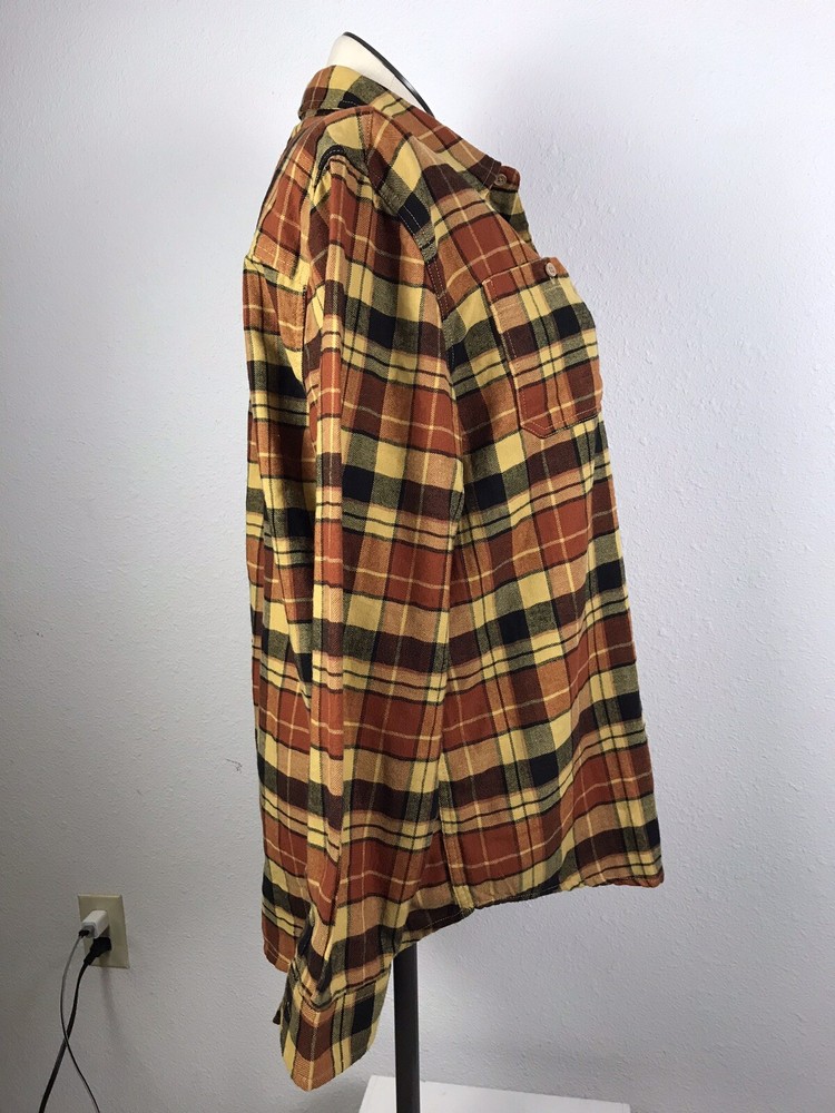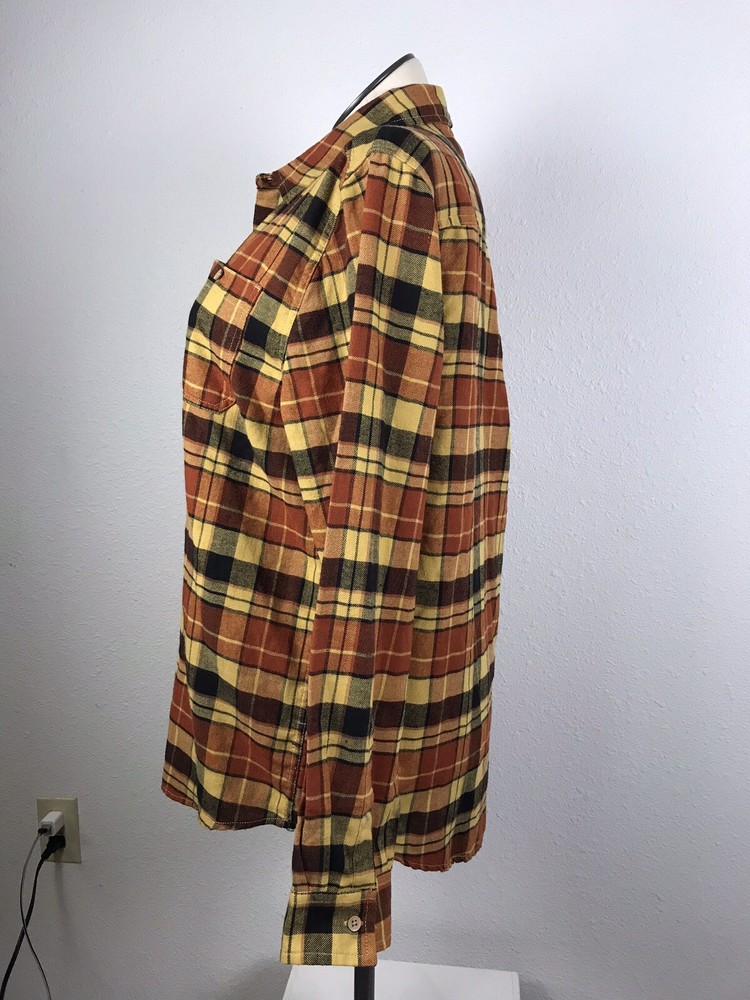 dip Women's Flannel Shirt Plaid Multicolor Bust Pocket’s Size Large Pre Owned 55% cotton 45% recycled polyester measurement chest : 25 length : 29-31 see pictures (A-40)