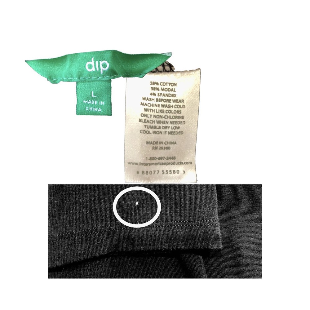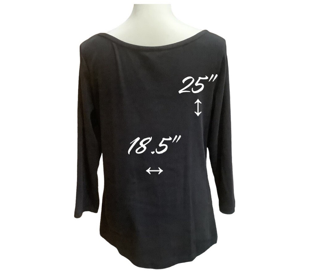 dip OFF-BLACK PULLOVER LONG-SLEEVED T-SHIRT LG. A classic off-black, lightweight, long-sleeved T-shirt with a round neck in size LG. This staple top was in my closet until I outgrew it š. I take very good care of my clothes - I always have. No snags, tears, rips, stretching, or odors. However, there is a small white dot on the back of the left sleeve cuff area (noted in the 3rd photo). Color Disclaimer: I do my best to ensure that my photos are as true to color as possible. However, due to inconsistencies of various monitors, lighting sources, digital photography and dye lot variations, I cannot guarantee that the color you see on your screen accurately portrays the true color of the product. Screen images are intended as a guide only and should not be regarded as absolutely correct. 081322