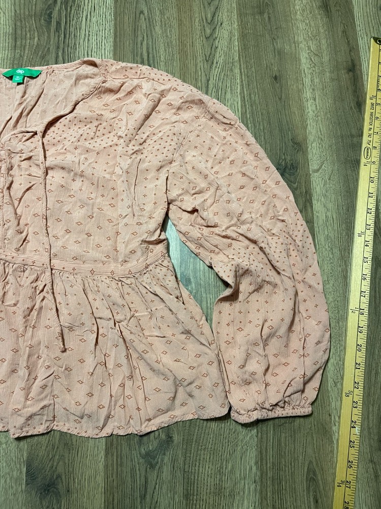 dip Shirt, Women's Size XL, Pink, Long Sleeve, V-neck, Tie on Neck Good used condition Size: Extra Large Questions are welcomed Color may vary slightly due to lighting Please Review all photos before purchasing Thanks for stopping by FREE Return!