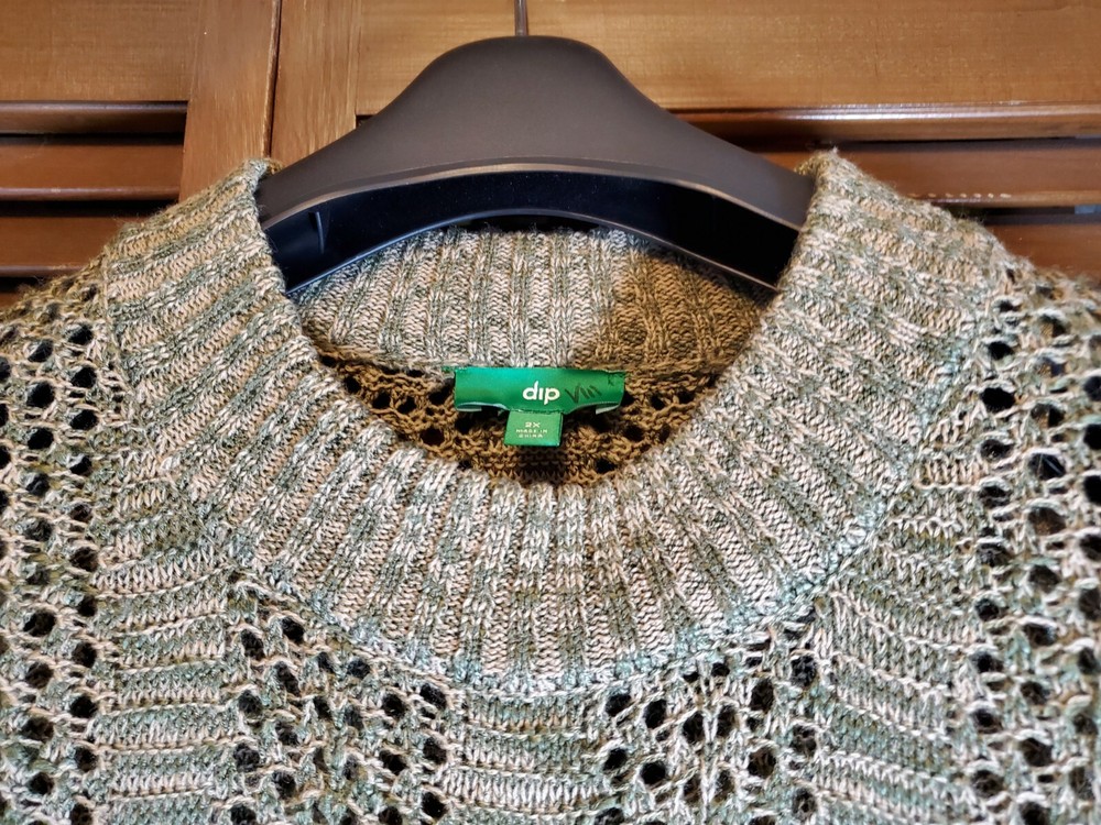 dip Sweater Size 2x Pullover Lacey Sweater Green/Tan Blend. Excellent condition. No pulls, stains or tears.