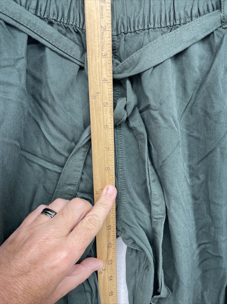 Get ready to impress with these stylish green pants from dip. Made of rayon material, they feature a comfortable elastic waist and a belted design for a secure fit. These women's pants come in size 10 with a straight leg and a high rise of greater than 10.5 inches. The pants are perfect for casual occasions and they have a solid pattern with a chino style. They also have a flat front, and the leg style is straight with an inseam of 26 inches. The pull-on closure makes them easy to wear, and they have additional features such as front pockets and a regular fit.