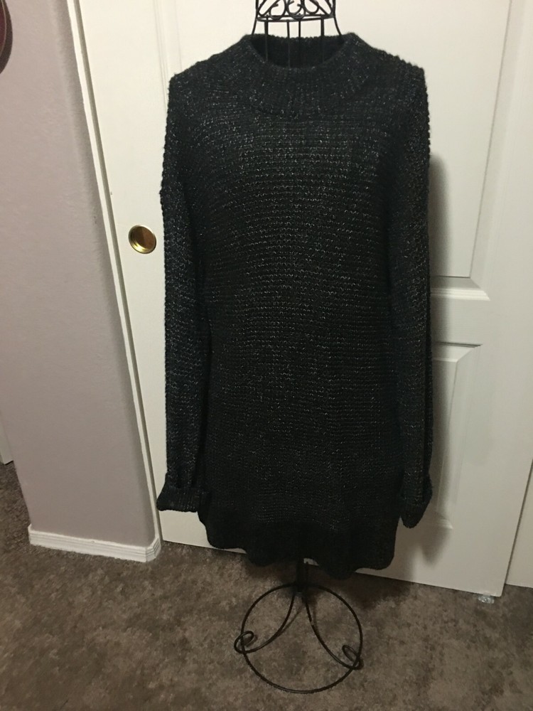 Women's New dip brand tunic sweater in size large. Main color is black with white specks. Perfect with leggings or jeans....