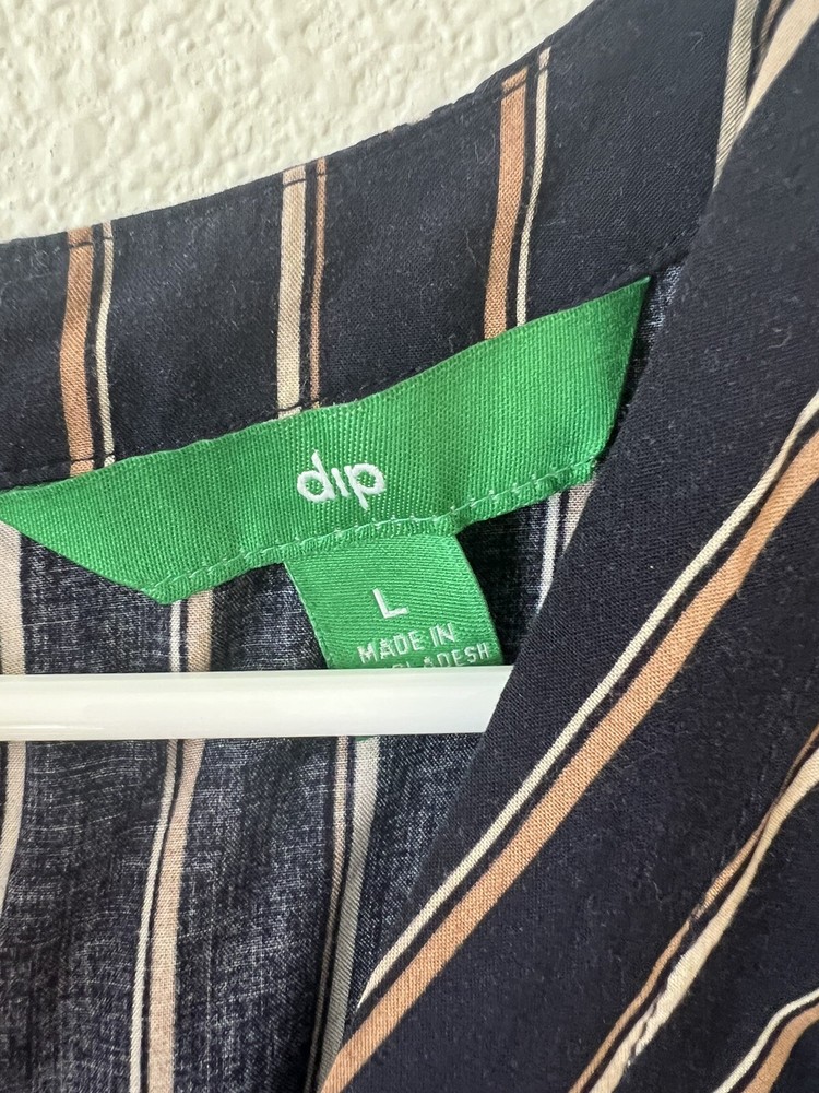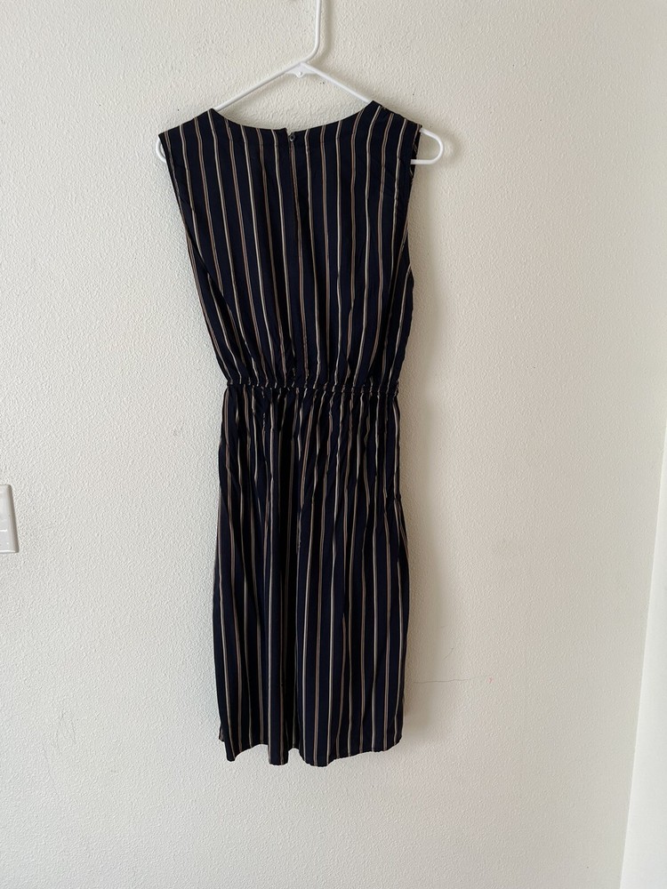 dip urban ladies dress L. Dress by Only For your daytime thing Striped print Adjustable straps Button-down front Shirred back panel Length 41” Pit to pit 15” 70% cotton 30% linen In good used condition White/Blue
