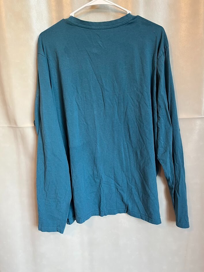 The product is a women's long sleeve teal shirt with a floral print in size XL. The shirt features a round neckline and is made of 100% organic cotton, making it comfortable and breathable. The basic style and blue color make it a versatile and stylish addition to any wardrobe, perfect for casual wear or layering. The dip brand ensures quality and attention to detail in this feminine and trendy top.