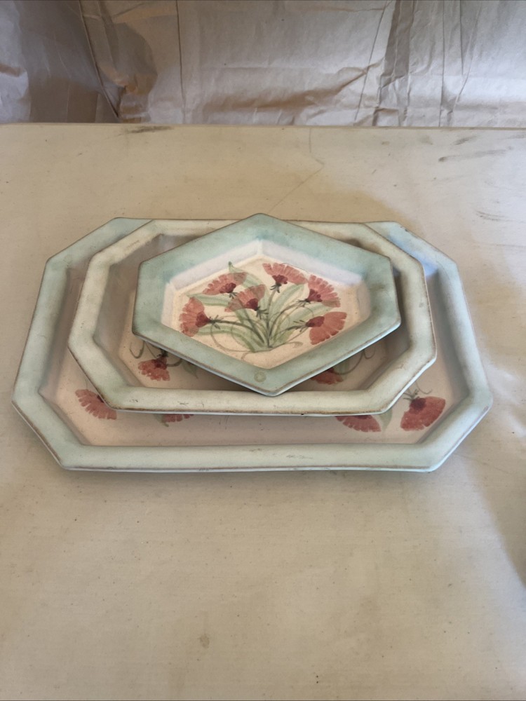 Elevate your hosting game with this charming handmade terracotta serving tray, perfect for any and all occasions. The tray boasts a beautiful pink floral design, adding a touch of artful elegance to your gatherings. Its ceramic composition and well-thought-out three-compartment layout make it both functional and stylish for presenting your favorite chips and dips. Crafted with care and a painted finish, this large tray is not only durable but also a unique addition to your serveware collection. It's an original piece that reflects expert craftsmanship, ready to be the centerpiece of your next event or a thoughtful gift for someone special.