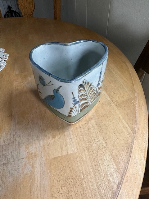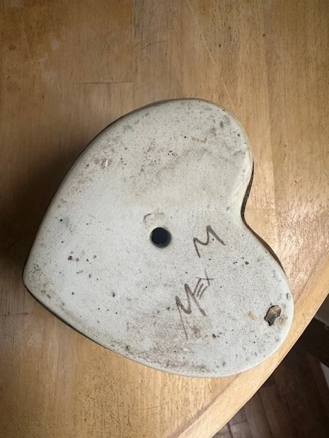 This adorable heart-shaped pottery dish from El Palomar Studio is a handmade treasure! The vibrant colors and intricate details make it perfect for holding trinkets or adding a touch of Mexican charm to any space. Sturdy, well-crafted, and in perfect condition—it’s a must-have for collectors or anyone who loves unique artisan pieces.