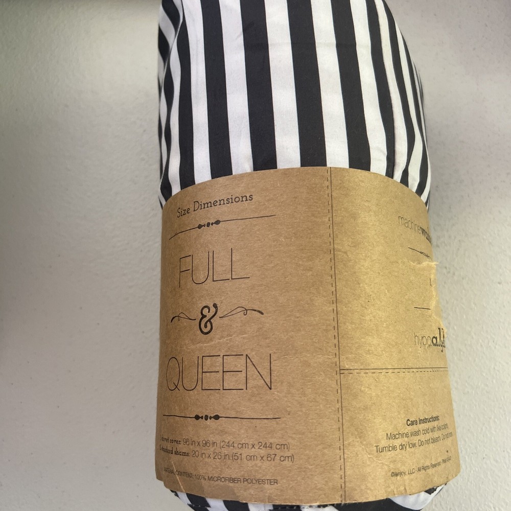 iEnjoy Home 3-Piece Patterned Full/ Queen Duvet Cover Set - Black/White. Includes: - 1 Duvet Cover (96 x 96 in) - 2 Standard Shams (20 x 26 in)
