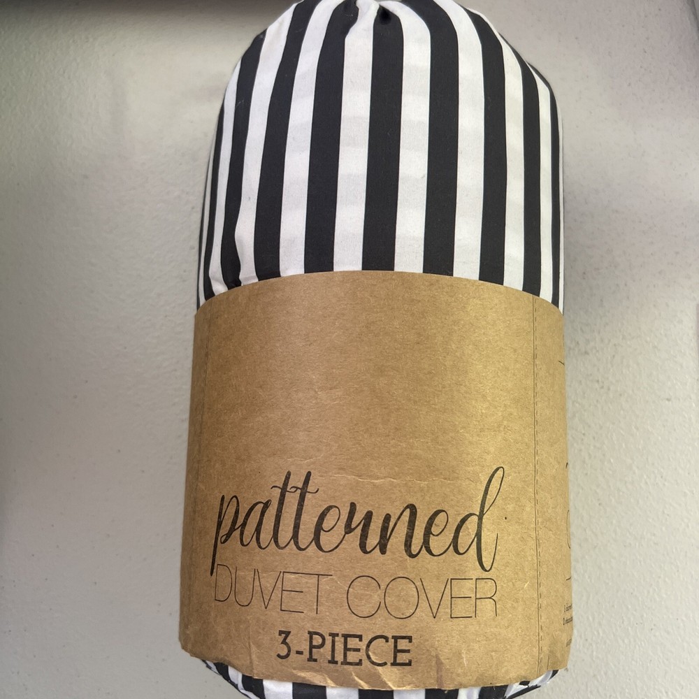 iEnjoy Home 3-Piece Patterned Full/ Queen Duvet Cover Set - Black/White. Includes: - 1 Duvet Cover (96 x 96 in) - 2 Standard Shams (20 x 26 in)...
