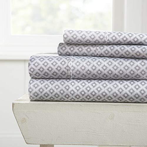 Add a designer accent to your bedroom décor with this timeless printed pattern artistically created to be a wonderful addition to any bedroom. Made of the finest imported double-brushed microfiber yarns creating a new standard in softness and breathability, this 4-piece sheet set will make it incredibly hard to get out of bed in the morning. Our premium yarns are times more durable than cotton, completely free, and perfect for all seasons. 4-piece set includes 1 Flat Sheet, 1 Fitted Sheet, and 2 Pillowcases (Twin sets come with 1 Pillowcase) Printed design for a classic addition to any bedroom décor 16" deep pocket fitted sheets - perfect for oversized mattresses Easy Care: Machine wash cold, Tumble dry low, Fade Resistant, Free, No Ironing Necessary
