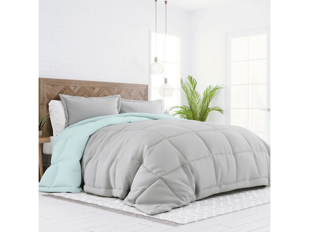 Description Not too heavy and not too light, this down-alternative comforter by ienjoy Home® is just right. Featuring a superior loft and down-like feel to keep you cozy all year round, this luxury comforter features end-to-end baffle-box construction to prevent fiber from shifting, eliminating the need for regular fluffing. Rest assured, this quality comforter is 100% hypoallergenic, too. Made of microfiber Lightweight shell for exceptional softness and drape Evenly filled for superior warmth Twin Size Set Includes: 1 Comforter: 70" x 90", 1 Standard Sham: 20" x 26" (2" flange) Generous baffle box stitching for optimum loft Machine washable Dimensions Width: 70.00" Height: 90.00" Depth: 90.00"