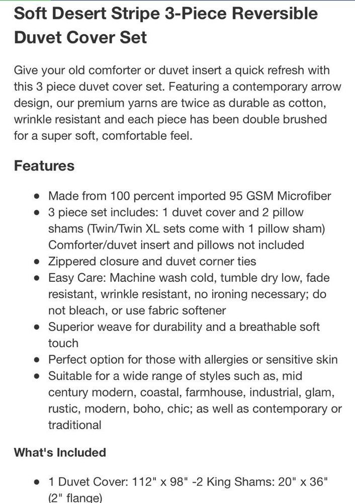Add a touch of luxury to your bedroom with this ienjoy Home 3 Piece Rugged Stripes Patterned Duvet Cover Set. The contemporary style and navy/white striped pattern will complement any room decor. The set includes one duvet cover, made from microfiber material that is soft to the touch and hypoallergenic, and two matching pillow shams. The set fits a King/Cal King size bed and is perfect for those who want to add a touch of elegance to their bedroom. The Home Collection Premium Ultra Soft Duvet Cover Set is new with tags and comes in a set of three pieces. The duvet cover set is made from high-quality microfiber material and features a striped pattern that is both rugged and stylish. The set includes a duvet cover and two pillow shams, and is hypoallergenic, making it perfect for those with allergies. This duvet cover set is perfect for anyone looking for a luxurious addition to their bedroom without breaking the bank. 🔥🔥🔥I DO NOT SHIP OUT THE CONTINENTAL UNITED STATES🔥🔥🔥 🙏🙏🙏 FIRST AND MOST IMPORTANT PLEASE CONTACT ME FIRST IF YOU ENCOUNTER PROBLEM WITH ITEM PURCHASED. I NEVER INTENTIONALLY TRY TO TAKE ADVANTAGE OF ANYONE. PLEASE GIVE ME OPPORTUNITY TO MAKE RIGHT BEFORE LEAVING NEGATIVE FEEDBACK. 🙏🙏🙏 🔥MERCHANDISE DISCLAIMER 🔥🔥PLEASE READ THIS BEFORE BIDDING OR BUYING ANY MERCHANDISE FROM ME🔥🔥. I’ve been selling on eBay only a short time and my experience has been overwhelming POSITIVE, but I still want to post this on all my listings for me and for you. I resell items that are sometimes brand new sometimes new but in an open box and sometimes used. If an item I sell is new I don’t open and inspect if it’s been opened but still in manufacture wrap I don’t test, we have all opened boxes in a store to peek. If it looks to have been removed I test mainly for power and digital functionality. But I am in NO WAY a person who could answer your questions about every item I sell. I suggest you Google. I do not except returns I don’t do this full time so if your looking for perfect boxes and definitely non opened items please don’t bid here, I find great deals and love offering them and making both of us happy 😃. But I’m not Macy’s or Dillards I buy and resell anything that is what I consider a great buy. So in conclusion if you buy from me please ask any questions before bidding or buying, I may not have an answer that suits you and that’s okay. There are millions of options on eBay. Happy shopping and I hope you find great deals.