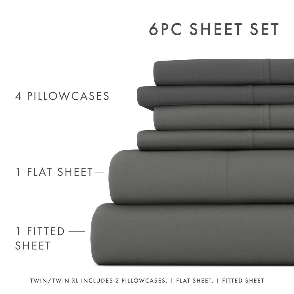 The home collection 6 piece sheet set by ienjoy Home is designed with your comfort in mind. Made of the finest double brushed microfiber yarns creating a new standard in softness and breathability, this 6 piece sheet set will make it incredibly hard to get out of bed in the morning. Our premium yarns are two times more durable than cotton, completely wrinkle free, and perfect for all seasons. LUXURY AND COMFORT-You'll be amazed at how silky soft, and comfortable these luxurious bed sheets are! ienjoy Home luxury sheet sets are designer sheets at an unbelievable price. The perfect fit for any room in your house - bedroom, guest room, kids room, dorm room, RV, vacation home. Great gift idea for men and women, Moms and Dads, Valentine's - Mother's - Father's Day, Birthday, and Christmas. CLASSIC TAILORED LOOK - Set includes: One flat sheet, one fitted sheet (with deep pockets), and four pillowcases. Twin/TwinXL come with two pillowcases. HIGH QUALITY - Ultra soft microfiber fabric woven with the finest craftsmanship. Good hand feel and very cozy to sleep on. Fade, stain, shrink and wrinkle resistant. Machine wash in cold, and quick dries on tumble dry low. More durable than any cotton! TREMENDOUS SELECTION - Colors include Aqua, Black, Burgundy, Chocolate, Cream, Gold, Gray, Ivory, Light Gray, Navy, Purple, Sage, Taupe, and White. QUEEN SIZE BED SHEET SET INCLUDES: 1 Queen Fitted Sheet: 60" W x 80" L + 16"; 1 Queen Flat Sheet: 90" W x 102" L; 4 Standard Pillowcases: 20" W x 30"
