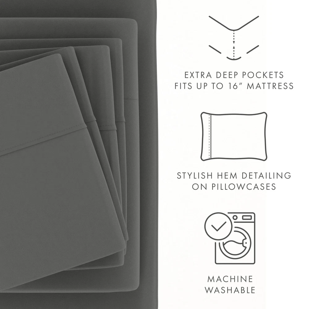 The home collection 6 piece sheet set by ienjoy Home is designed with your comfort in mind. Made of the finest double brushed microfiber yarns creating a new standard in softness and breathability, this 6 piece sheet set will make it incredibly hard to get out of bed in the morning. Our premium yarns are two times more durable than cotton, completely wrinkle free, and perfect for all seasons. LUXURY AND COMFORT-You'll be amazed at how silky soft, and comfortable these luxurious bed sheets are! ienjoy Home luxury sheet sets are designer sheets at an unbelievable price. The perfect fit for any room in your house - bedroom, guest room, kids room, dorm room, RV, vacation home. Great gift idea for men and women, Moms and Dads, Valentine's - Mother's - Father's Day, Birthday, and Christmas. CLASSIC TAILORED LOOK - Set includes: One flat sheet, one fitted sheet (with deep pockets), and four pillowcases. Twin/TwinXL come with two pillowcases. HIGH QUALITY - Ultra soft microfiber fabric woven with the finest craftsmanship. Good hand feel and very cozy to sleep on. Fade, stain, shrink and wrinkle resistant. Machine wash in cold, and quick dries on tumble dry low. More durable than any cotton! TREMENDOUS SELECTION - Colors include Aqua, Black, Burgundy, Chocolate, Cream, Gold, Gray, Ivory, Light Gray, Navy, Purple, Sage, Taupe, and White. QUEEN SIZE BED SHEET SET INCLUDES: 1 Queen Fitted Sheet: 60" W x 80" L + 16"; 1 Queen Flat Sheet: 90" W x 102" L; 4 Standard Pillowcases: 20" W x 30"
