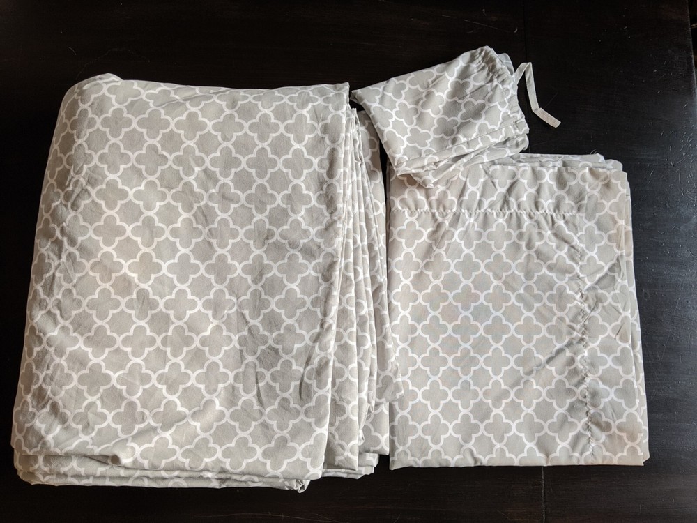 Washed but never used. Comes with duvet cover and two king size pillowcases. 100% brushed microfiber fabric - incredibly soft and comfortable!