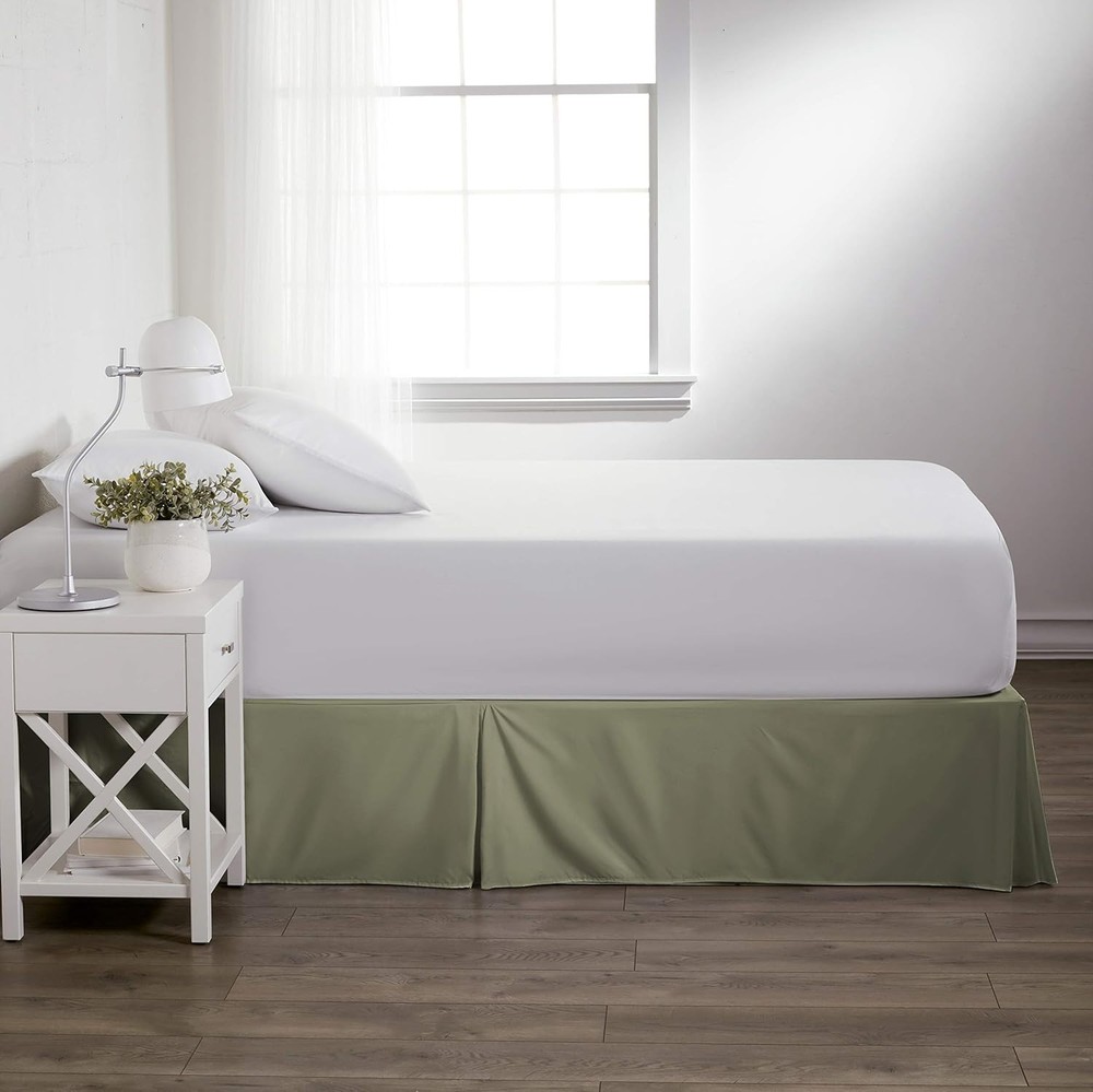 This bed skirt is a game-changer! The sage color is soft and elegant, blending perfectly with my bedroom decor. The microfiber material feels high-quality and drapes beautifully with crisp pleats. The 14-inch drop fits my king bed just right, hiding the frame and storage below neatly. It was easy to put on and stayed perfectly in place—no shifting or bunching. Machine washable is a huge plus for keeping it fresh. Definitely worth it for a polished, put-together look!
