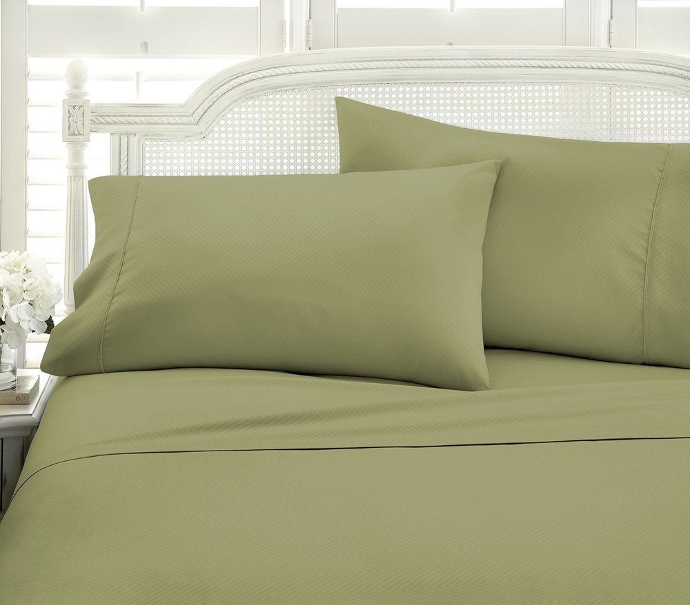 ienjoy Home Embossed 4 Piece Sheet Set, California King, Chevron Sage ✓ Free 60 Day Returns ✓ Free Express Shipping Description: The home collection embossed 4-piece sheet set by ienjoy Home is designed with your comfort in mind. Add a designer accent to your bedroom decor with this timeless chevron pattern artistically created to be a wonderful addition to any bedroom. Made of the finest imported double-brushed microfiber yarns creating a new standard in softness and breathability, this 4-piece sheet set will make it incredibly hard to get out of bed in the morning. Our premium yarns are two times more durable than cotton, completely wrinkle free, and perfect for all seasons. Size guide: twin size set includes: 1 twin fitted sheet: 39" W x 75" L +16" 1 twin flat sheet: 66" W x 96" L 1 standard pillowcase: 20" W x 30" L full size set includes: 1 full fitted sheet: 54" W x 75" L + 16" 1 full flat sheet: 81" W x 96" L 2 standard pillowcases: 20" W x 30" L Queen size set includes: 1 Queen fitted sheet: 60" W x 80" L + 16" 1 Queen flat sheet: 90" W x 102" L 2 standard pillowcases: 20" W x 30" L King size set includes: 1 King fitted sheet: 78" W x 80" L + 16" 1 King flat sheet: 102" W x 105" L 2 King pillowcases: 20" W x 40" L California King size set includes: 1 California King fitted sheet: 72" W x 84" L + 16" 1 California King flat sheet: 108" W x 102" L 2 King pillowcases: 20" W x 40" L Features: 100% Microfiber LUXURY AND COMFORT-You'll be amazed at how silky soft, and comfortable these luxurious bed sheets are! ienjoy Home luxury sheet sets are designer sheets at an unbelievable price. The perfect fit for any room in your house - bedroom, guest room, kids room, dorm room, RV, vacation home. Great gift idea for men and women, Moms and Dads, Valentine's - Mother's - Father's Day, Birthday, and Christmas. CLASSIC TAILORED LOOK - Set includes: One flat sheet, one fitted sheet (with deep pockets), and two pillowcases. Twin/TwinXL come with one pillowcase. HIGH QUALITY - Ultra soft microfiber fabric woven with the finest craftsmanship. Good hand feel and very cozy to sleep on. Fade, stain, shrink and wrinkle resistant. Machine wash in cold, and quick dries on tumble dry low. More durable than any cotton! TREMENDOUS SELECTION - Colors include Aqua, Cream, Gray, Purple, Sage, and White. Embossed patterns include Checkered, Chevron, and Dobby Stripe. CALIFORNIA KING SIZE BED SHEET SET INCLUDES: 1 California King Fitted Sheet: 72" W x 84" L + 16"; 1 California King Flat Sheet: 108" W x 102" L; 2 King Pillowcases: 20" W x 40" L Product Details: Size: California King - Flannel Material: Microfiber Color: Chevron Sage Pattern: Patterned Brand: Linen Market Size: California King - Flannel Material: Microfiber Color: Chevron Sage Pattern: Patterned Brand: Linen Market Number of Pieces: 4 Special Feature: Wrinkle Resistant Style: Embossed Included Components: 1 Flat Sheet, 1 Fitted Sheet, 2 Pillow Cases Thread Count: 20000 Product Care Instructions: Machine Wash Theme: Stripe Seasons: All Item dimensions L x W x H: 102 x 108 x 1 inches Pillowcase Quantity: 2 Unit Count: 4.0 Count Item Display Dimensions: 102 x 108 x 1 inches Global Trade Identification Number: 45 Manufacturer: ienjoy Home UPC: 814760025445 Product Dimensions: 102 x 108 x 1 inches Item Weight: 3.54 pounds Item model number: IEH-4PC-16-4 Is Discontinued By Manufacturer: No Fabric Type: 100% Microfiber Finish types: Double Brushed Microfiber Assembly required: No Batteries required: No