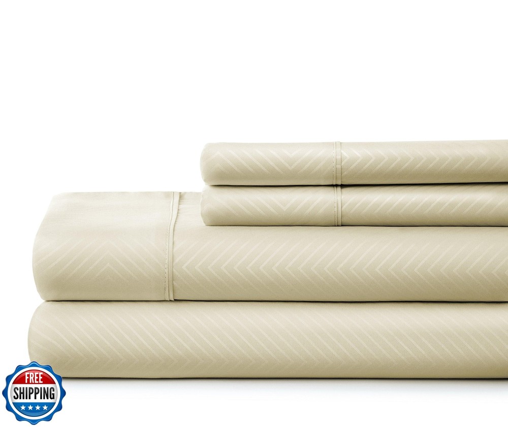 ienjoy Home Embossed 4 Piece Sheet Set, Queen, Chevron Cream Features LUXURY AND COMFORT-You'll be amazed at how silky soft, and comfortable these luxurious bed sheets are! ienjoy Home luxury sheet sets are designer sheets at an unbelievable price. The perfect fit for any room in your house - bedroom, guest room, kids room, dorm room, RV, vacation home. Great gift idea for men and women, Moms and Dads, Valentine's - Mother's - Father's Day, Birthday, and Christmas. CLASSIC TAILORED LOOK - Set includes: One flat sheet, one fitted sheet (with deep pockets), and two pillowcases. Twin/TwinXL come with one pillowcase. HIGH QUALITY - Ultra soft microfiber fabric woven with the finest craftsmanship. Good hand feel and very cozy to sleep on. Fade, stain, shrink and wrinkle resistant. Machine wash in cold, and quick dries on tumble dry low. More durable than any cotton! TREMENDOUS SELECTION - Colors include Aqua, Cream, Gray, Purple, Sage, and White. Embossed patterns include Checkered, Chevron, and Dobby Stripe. QUEEN SIZE BED SHEET SET INCLUDES: 1 Queen Fitted Sheet: 60" W x 80" L + 16"; 1 Queen Flat Sheet: 90" W x 102" L; 2 Standard Pillowcases: 20" W x 30" Shipping Free & Fast Shipping: We offer free shipping to most of the USA with a normal delivery time of 3-7 days. However, due to the current situation, additional delivery time (up to 3 weeks) may be required for some items. Alternative Carriers: We may use alternative carriers (e.g., USPS, FedEx, UPS) to ensure your package arrives safely and on time. Due to the use of multiple carriers, we are unable to provide a tracking number automatically. Handling Time: Orders are processed and shipped within 1-2 business days of receiving cleared payment. Shipping Restrictions: Shipping to Alaska, Hawaii, Puerto Rico, Guam, and other US territories may incur shipping charges or delivery restrictions. Please contact us before ordering, or your order can be refunded/cancelled. State Restrictions: Certain items may not be shipped to California due to state regulations. Contact for Tracking Updates: If you require tracking updates or have any concerns about the delivery of your order, please feel free to contact us, and we will be happy to assist you. Return Policy 30-Day Hassle-Free Returns: If you are not completely satisfied with your purchase, you can return the item for free within 30 days of receiving it for a full refund or exchange. Easy Return Process: Contact us, and we will provide you with a prepaid return shipping label and detailed instructions. No Restocking Fee: There are no restocking fees for returns. However, the buyer is responsible for return shipping costs if the return is not due to a seller"s error. Refund Processing: Refunds will be processed within 1 business day of receiving the returned item in its original condition. Feedback Your feedback is extremely important to us. We strive to provide the best products and customer service possible. If you are satisfied with your purchase, please take a moment to leave us a positive review. If you have any concerns or issues with your order, please contact us before leaving negative feedback. We are committed to resolving any problems and ensuring your satisfaction. Contact Us If you have any questions or concerns, please feel free to reach out to our customer support team. You can contact us through the eBay messaging system. We are available Monday to Friday, 9:00 am to 5:00 pm EST, and we will do our best to respond to your inquiry within 24 hours. Thank you for supporting our small family business!