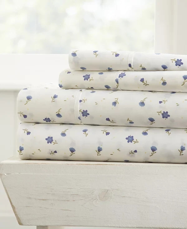 Product Details The Home Collection 4-Piece sheet set is designed with your comfort in mind. Add a designer accent to your bedroom decor with this timeless printed pattern artistically created to be a wonderful addition to any bedroom. Product Features 4-piece set includes 1 Flat Sheet, 1 Fitted Sheet, and 2 Pillowcases 1 California King Fitted Sheet - 72"W x 84"L, 16" 1 California King Flat Sheet - 108"W x 102"L 2 King Pillowcases - 20"W x 40"L Fade Resistant, Wrinkle Free, No Ironing Necessary Hypoallergenic and Antimicrobial for allergy sufferers and sensitive skin 16" deep pocket fitted sheets - perfect for oversized mattresses Superior weave for durability and a buttery-soft touch Microfiber/polyeser Machine washable
