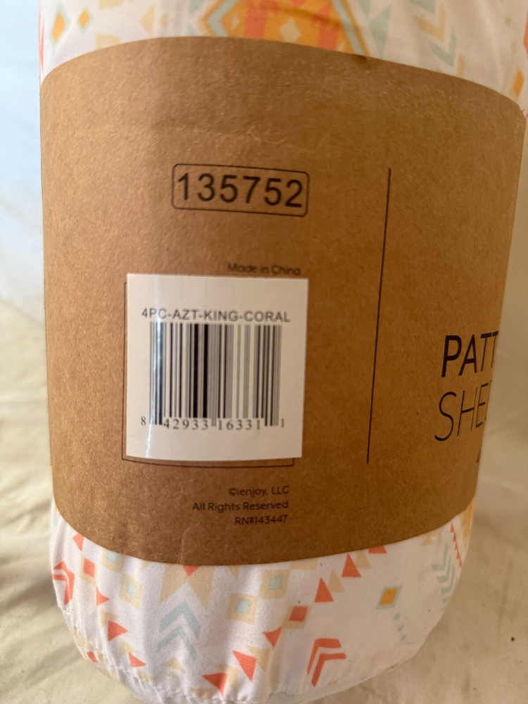 RETAIL PRICE $ 200 BEST PRICE GUARANTEED! This is guaranteed authentic. Brand: ienjoy Home Collection Size: King Color: White Multi Material: Microfiber Condition: New with tags! Product size- King 4-piece set includes 1 Flat Sheet, 1 Fitted Sheet, and 2 Pillowcases 1 King Fitted Sheet - 78"W x 80" L, 16" Pocket 1 King Flat Sheet - 102"W x 105"L 2 King Pillowcases - 20"W x 40"L Superior weave for durability and a buttery-soft touch 14" deep pocket fitted sheets - fits mattress up to 16" Hypoallergenic for allergy sufferers and sensitive skin Fade Resistant, Wrinkle Free, No Ironing Necessary Microfiber Machine wash cold, tumble dry low Imported